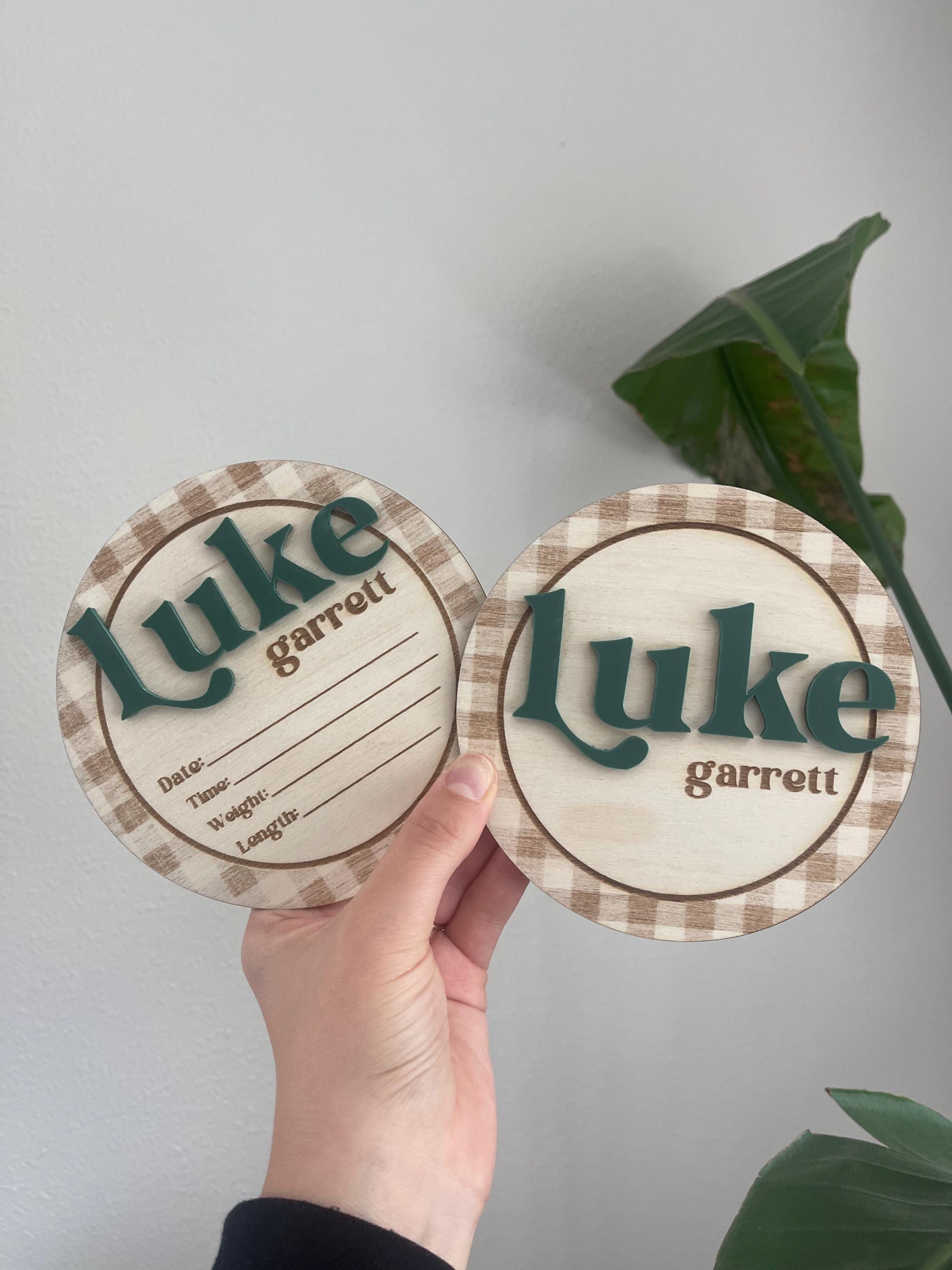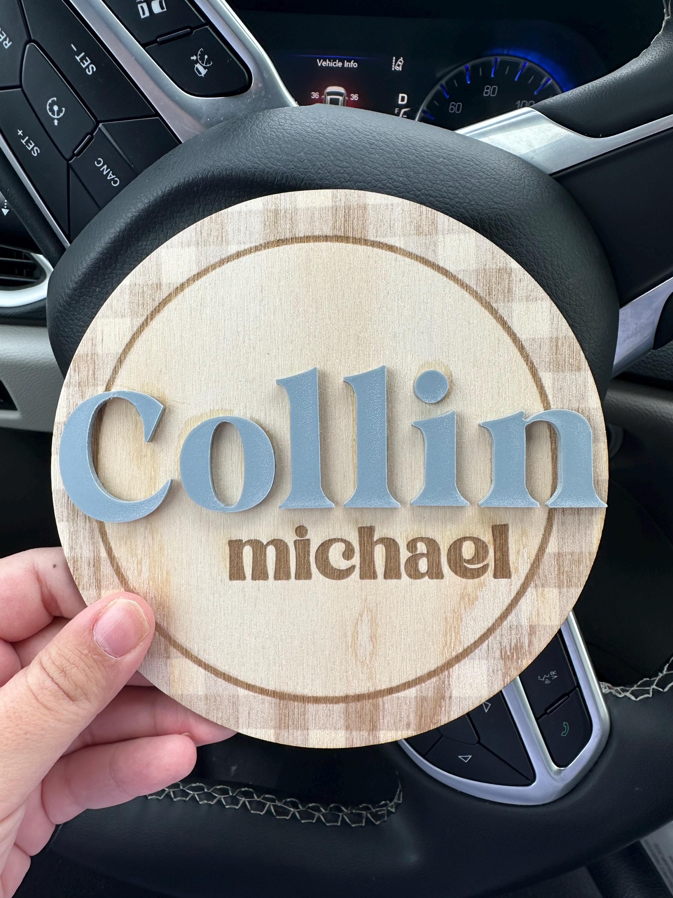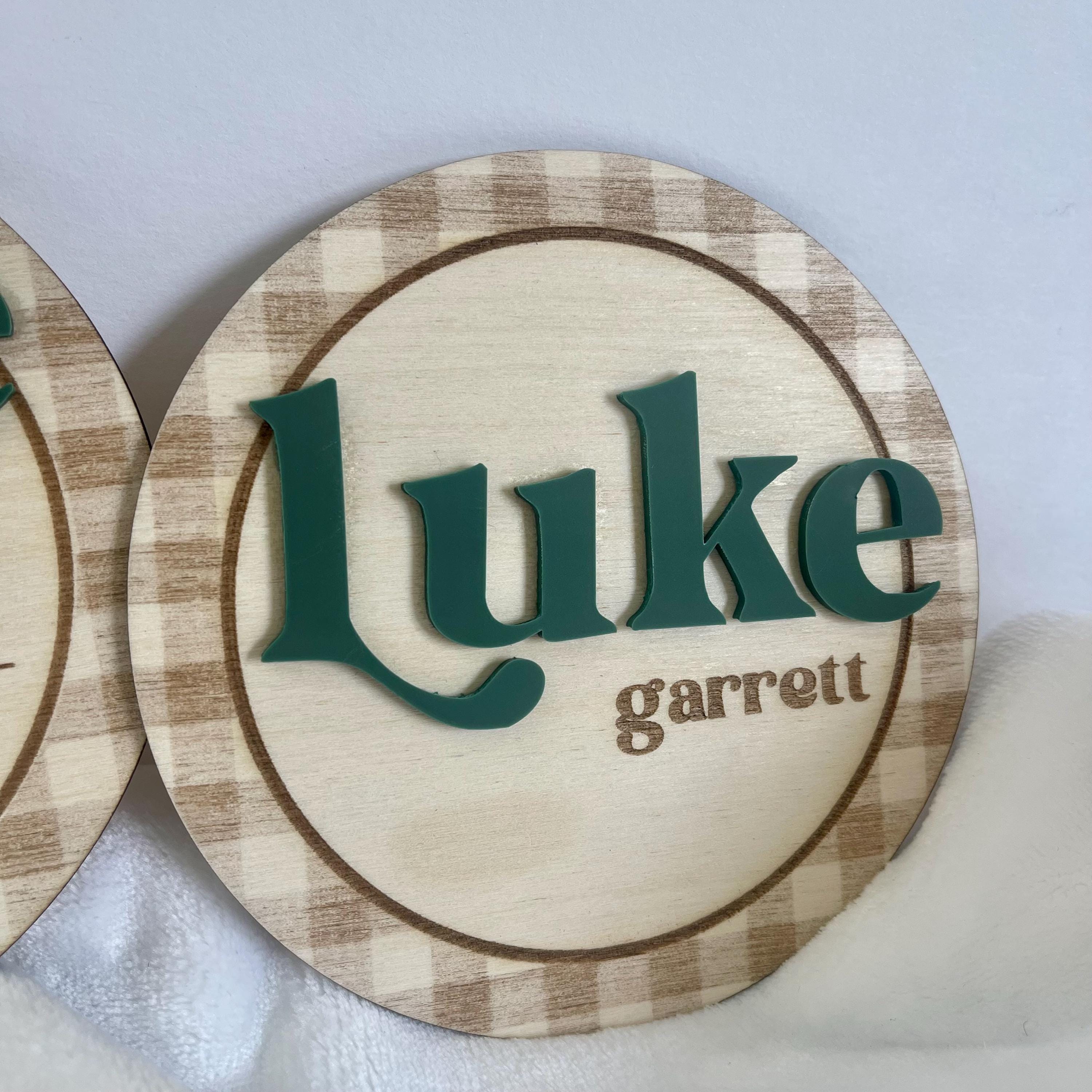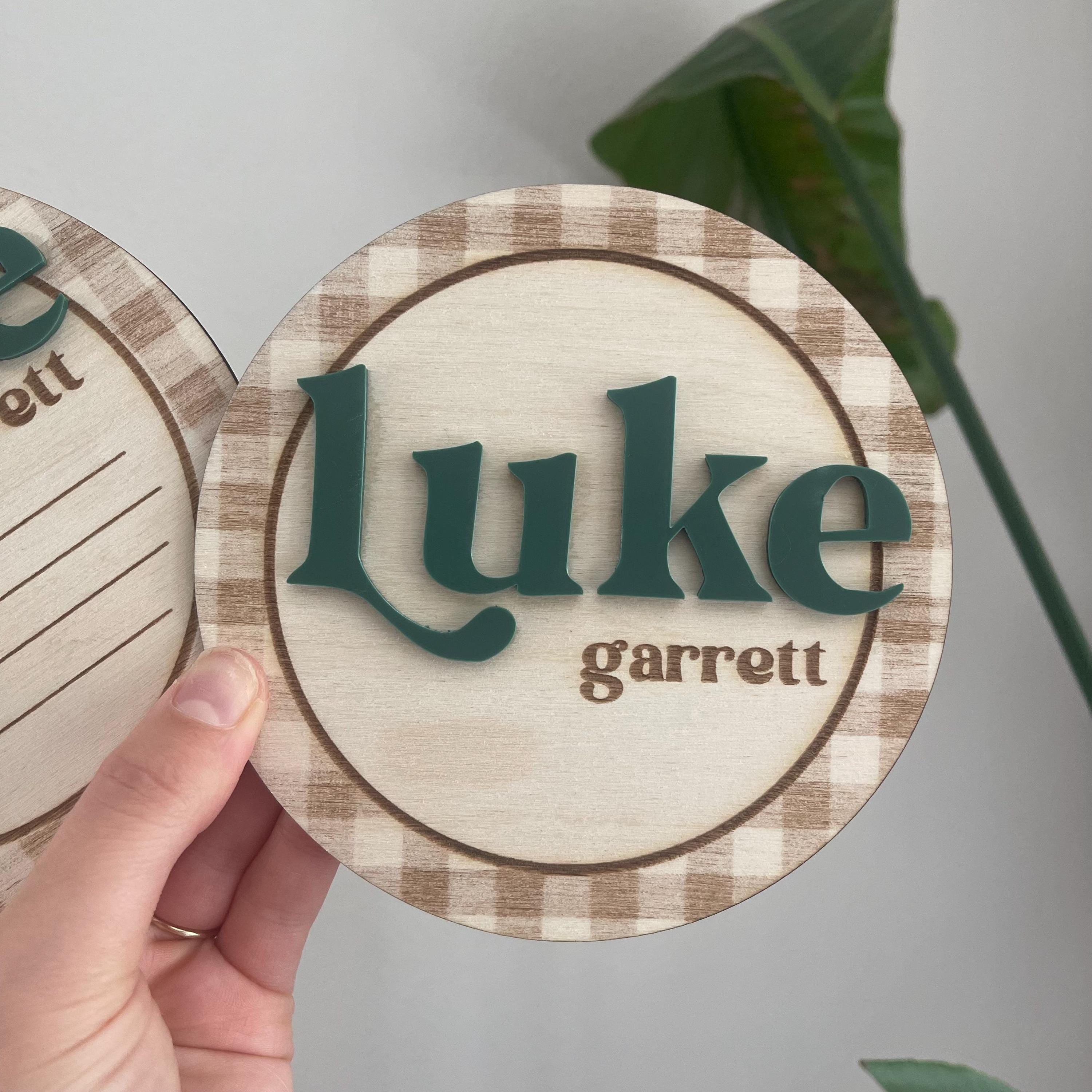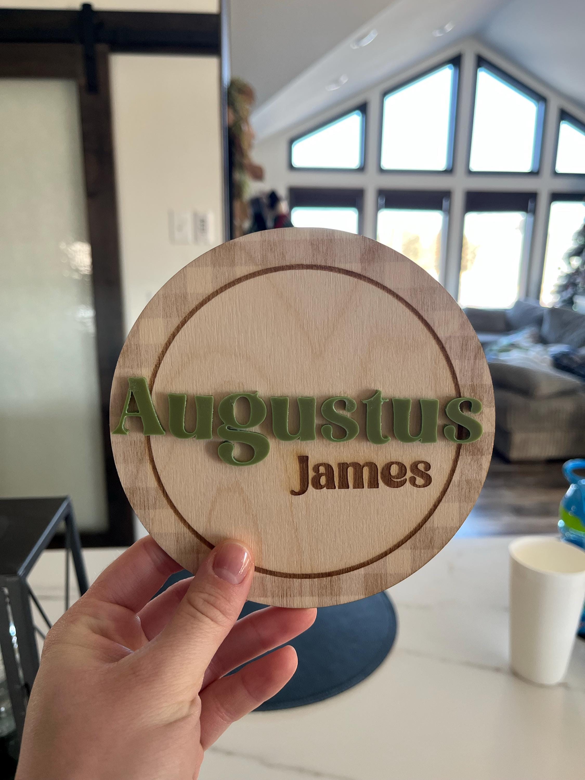 Each item is handcrafted, so slight variations and imperfections may occur. Due to variations in the length of the first and middle names, the text may not always be perfectly centered within the circle.