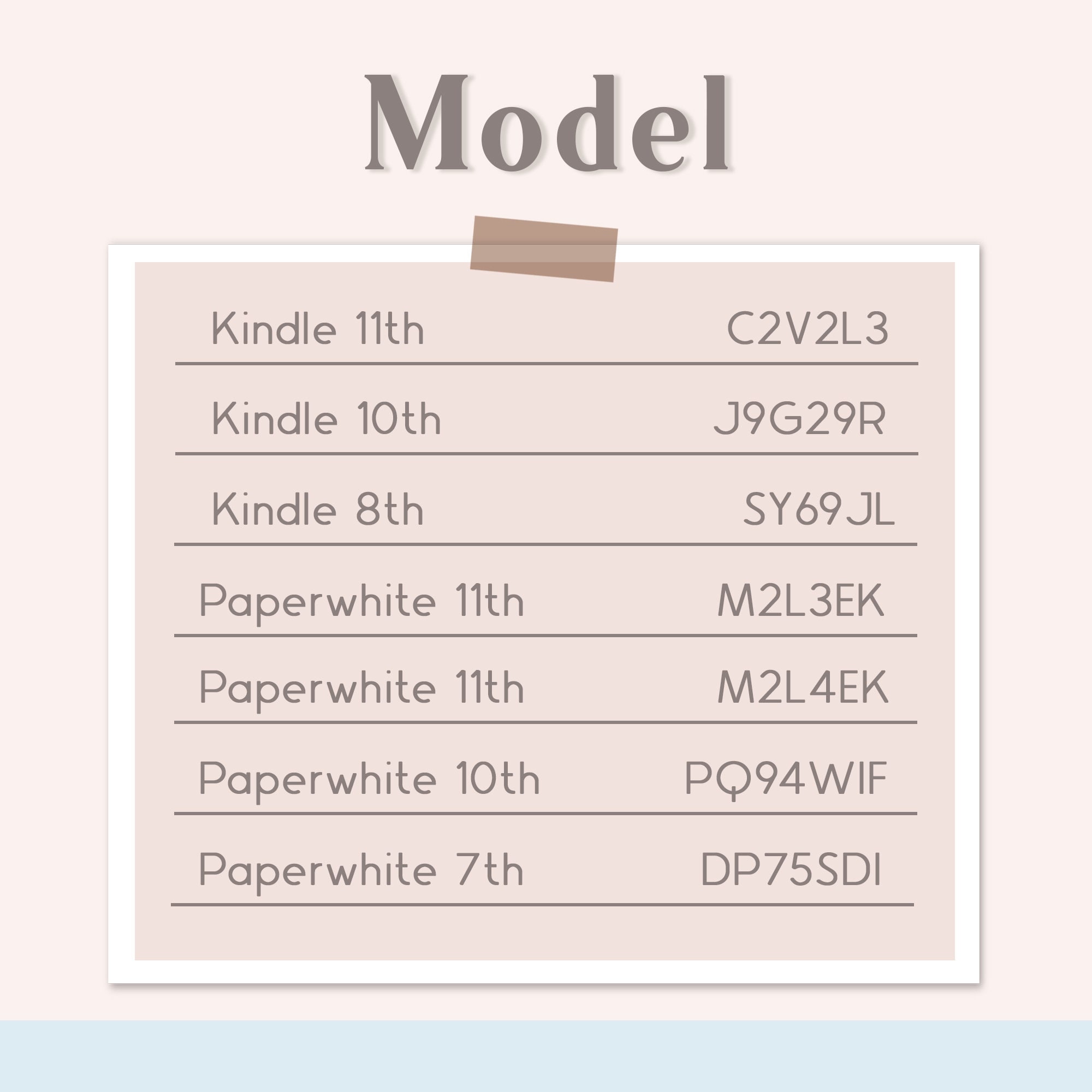 2. Check the bottom on the back of E-reader, find the text after 'MODEL NO'. That's the correct model number.