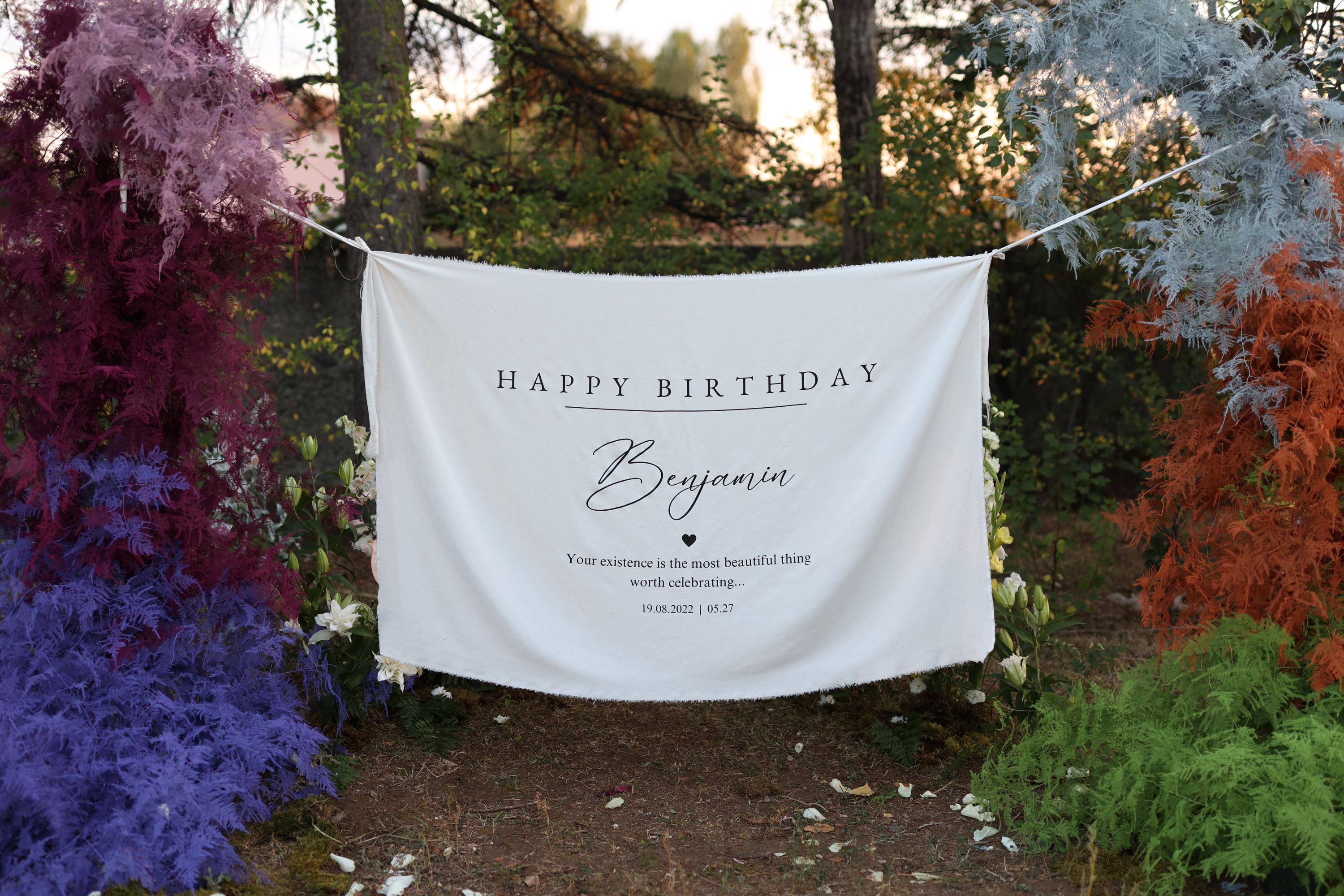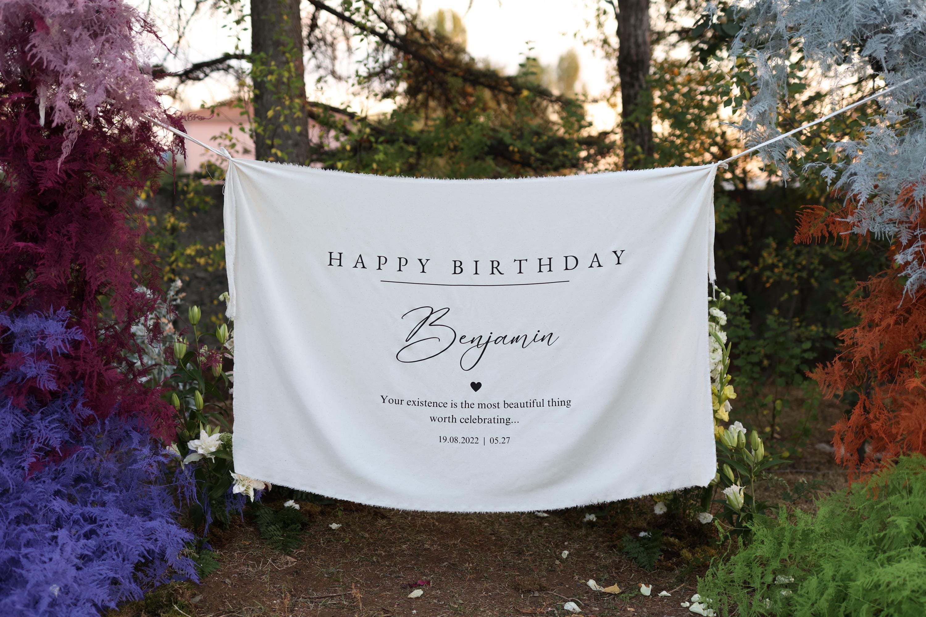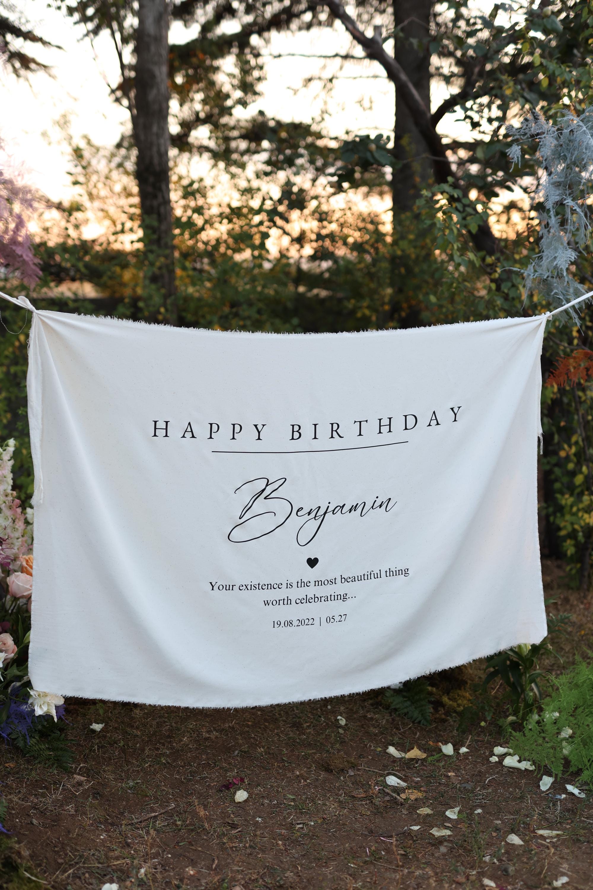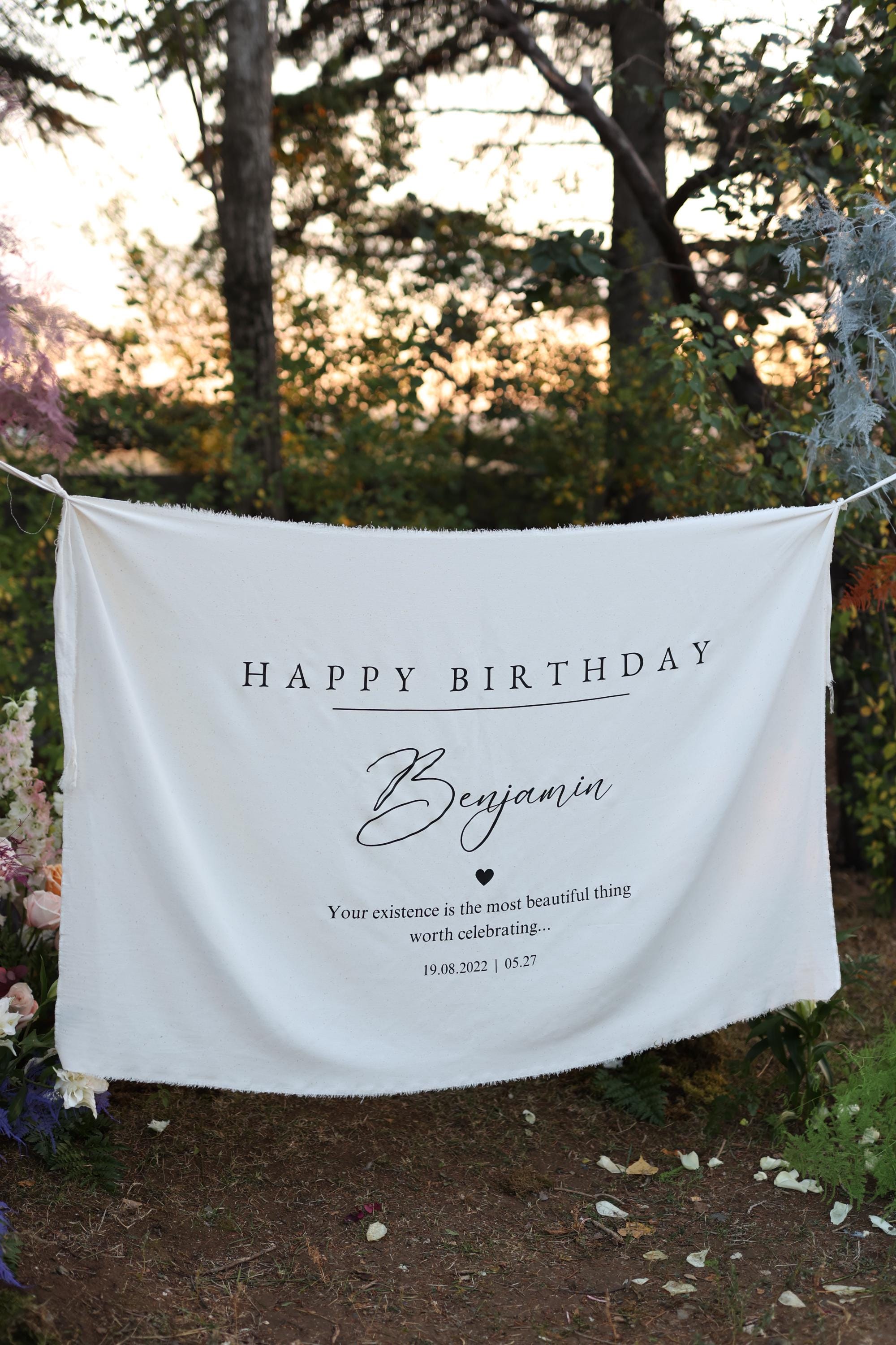 Linen Birthday Banner, Custom Birthday Banner, Personalised Birthday Name Flag, Fabric Sign, Fabric Birtday Sign, Birthday Boho Wall Art