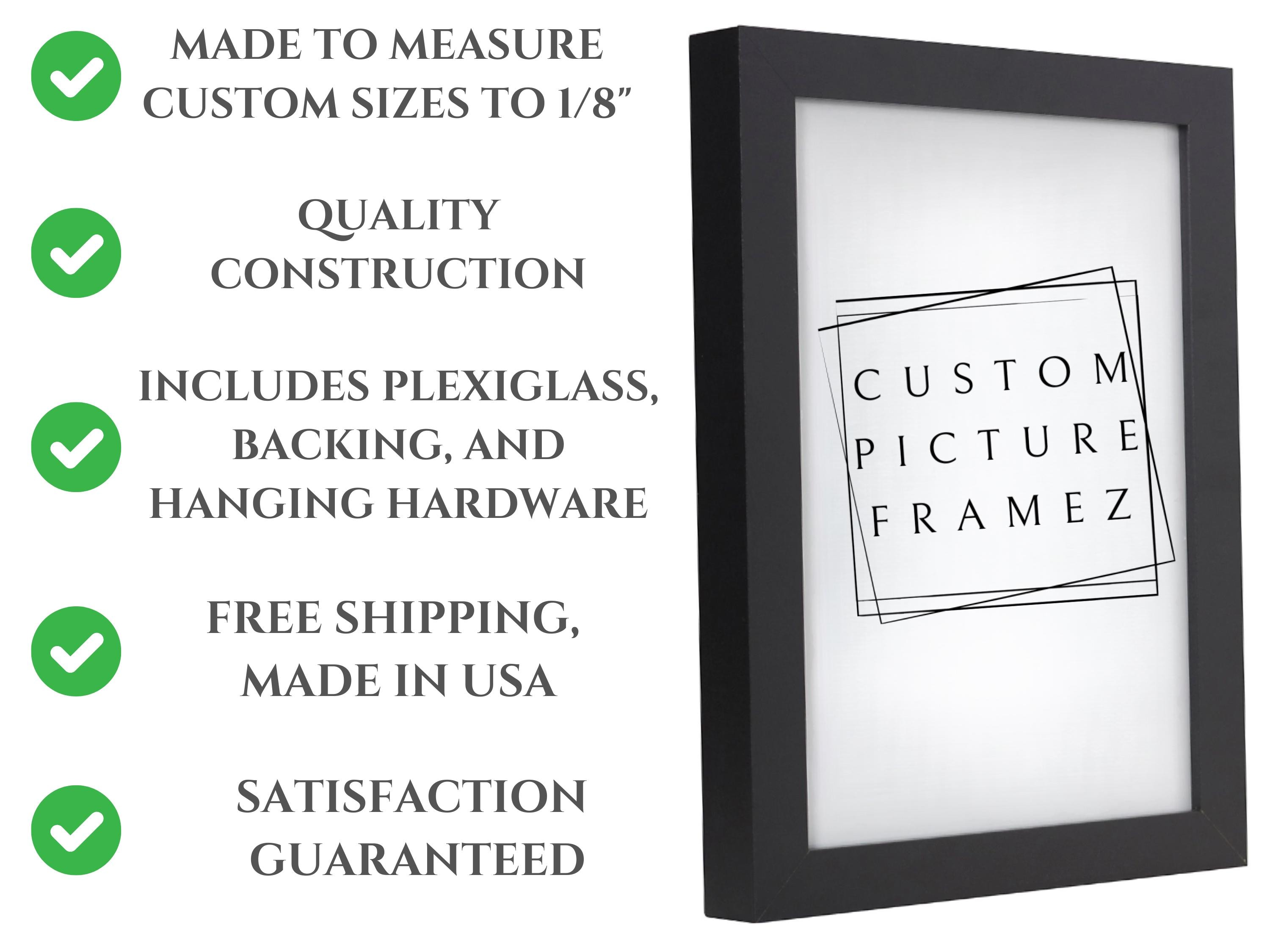 Quality Custom Made to Measure Picture Frame at Best Price. Available in Satin Black or White. Frame is 1-1/4" Wide made of a high quality Wood MDF with a smooth painted satin finish. This frame will compliment and preserve your favorite image.