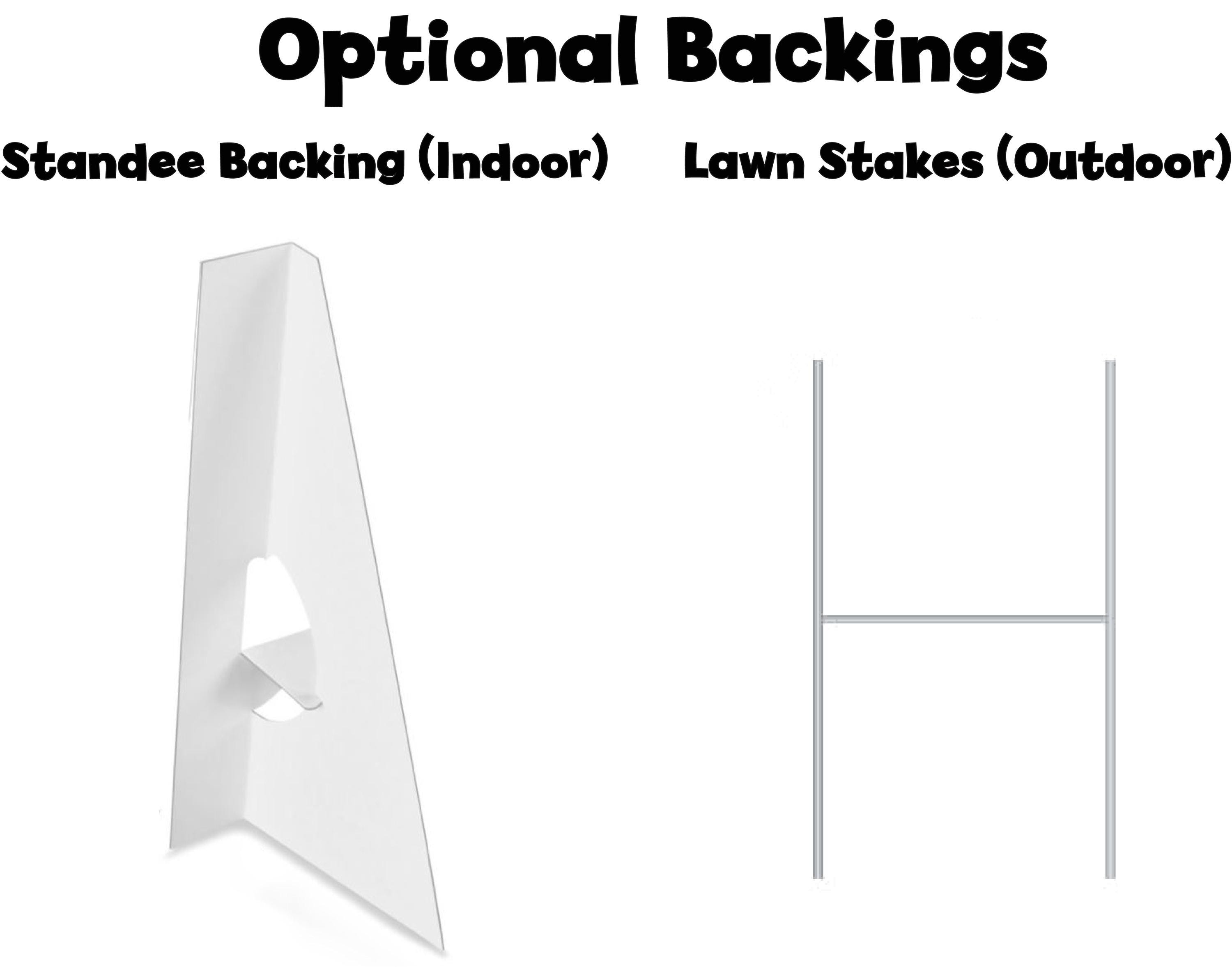 Easel Back Standees: Perfect for freestanding indoor displays.