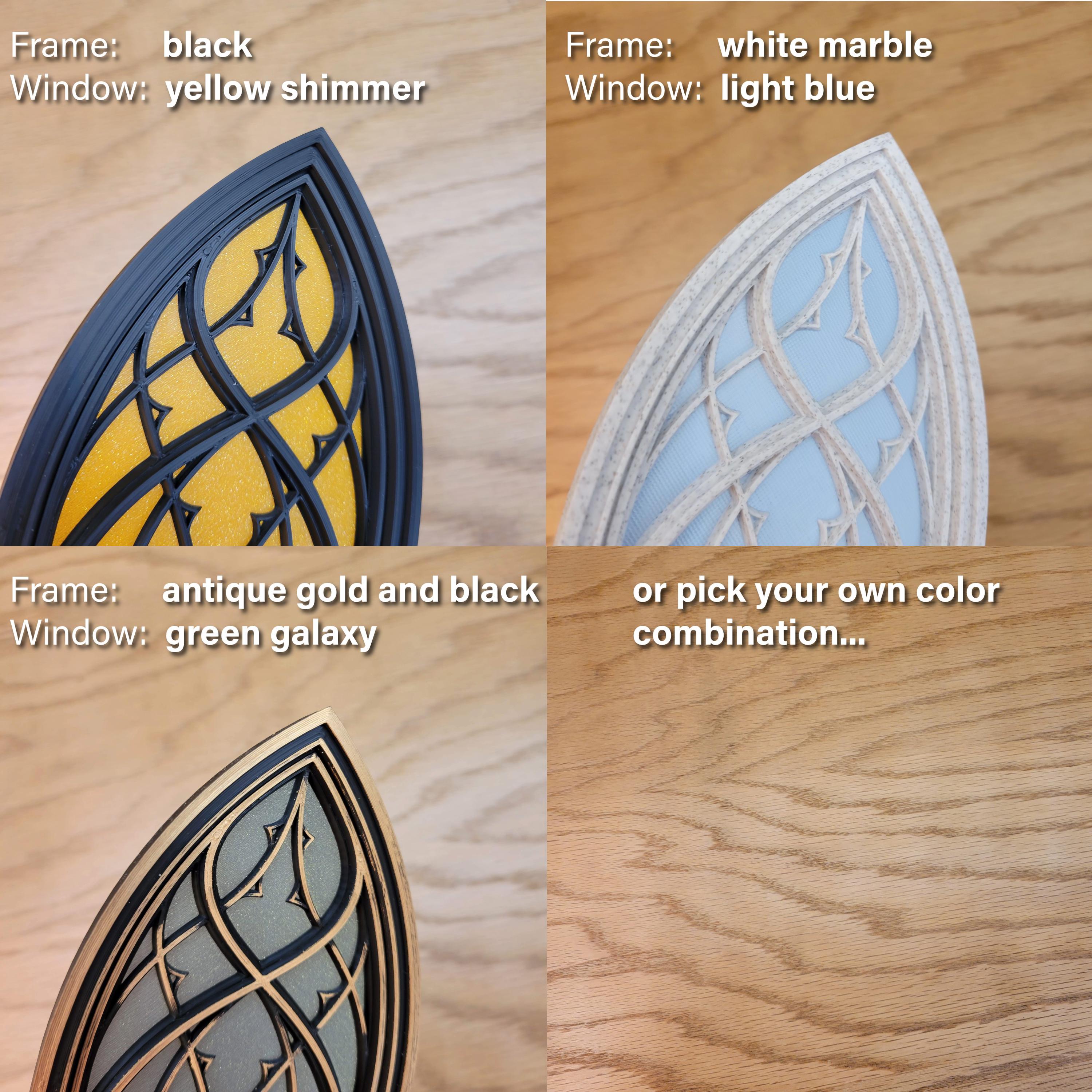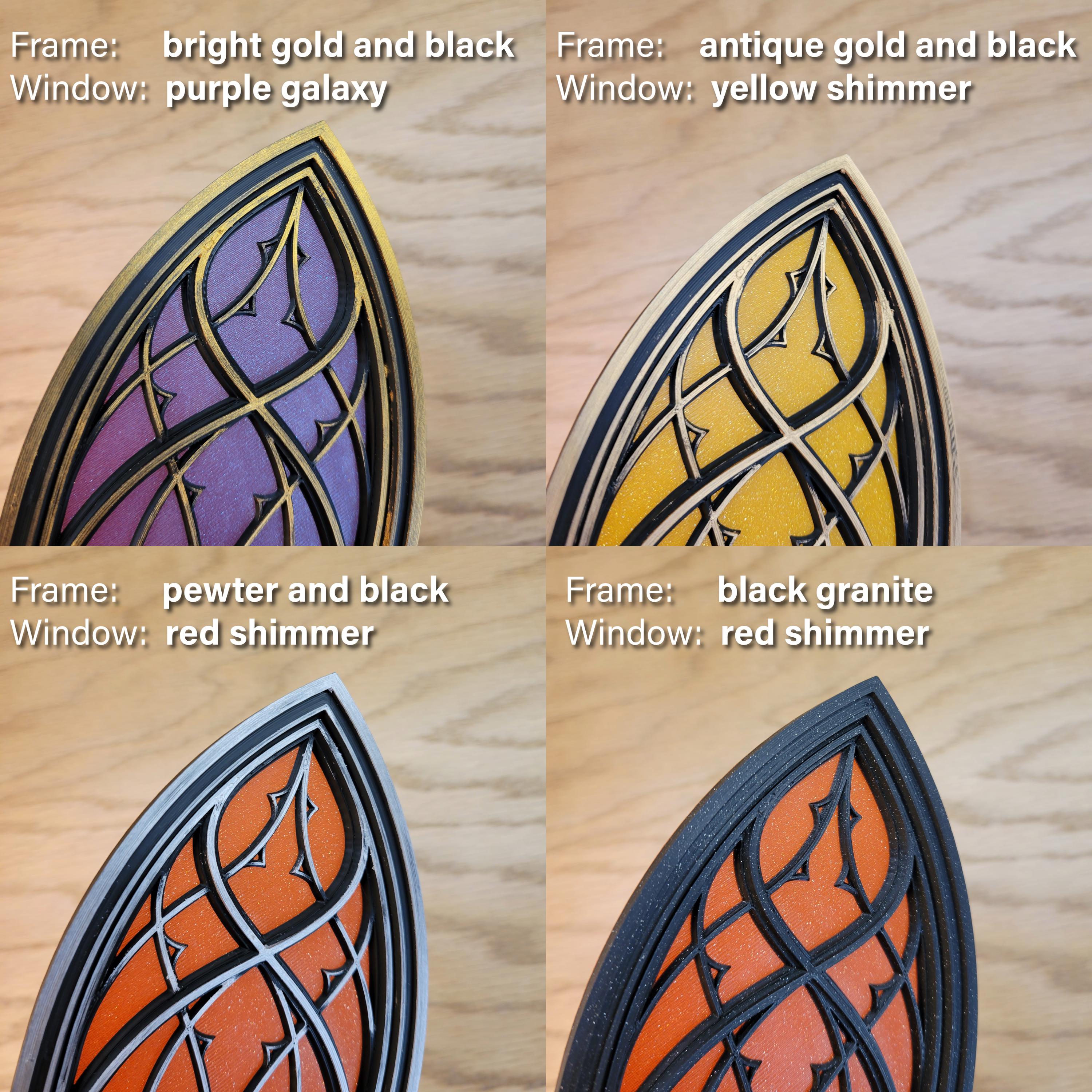 I show some of my favorite color combinations in the pictures. Pick one of those or pick your own combination. The gold/silver ones are hand painted and really make the intricate detail stand out even at night. All colors will have a black base that holds the LED light.