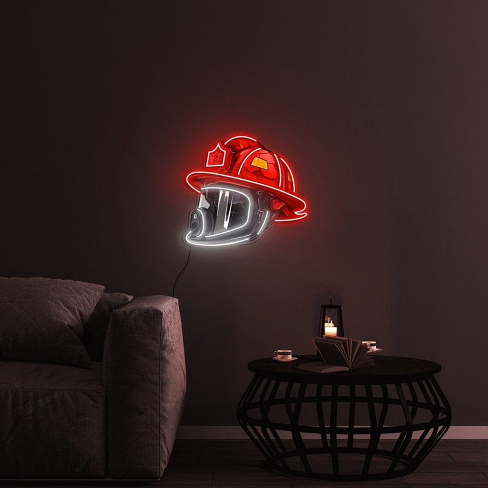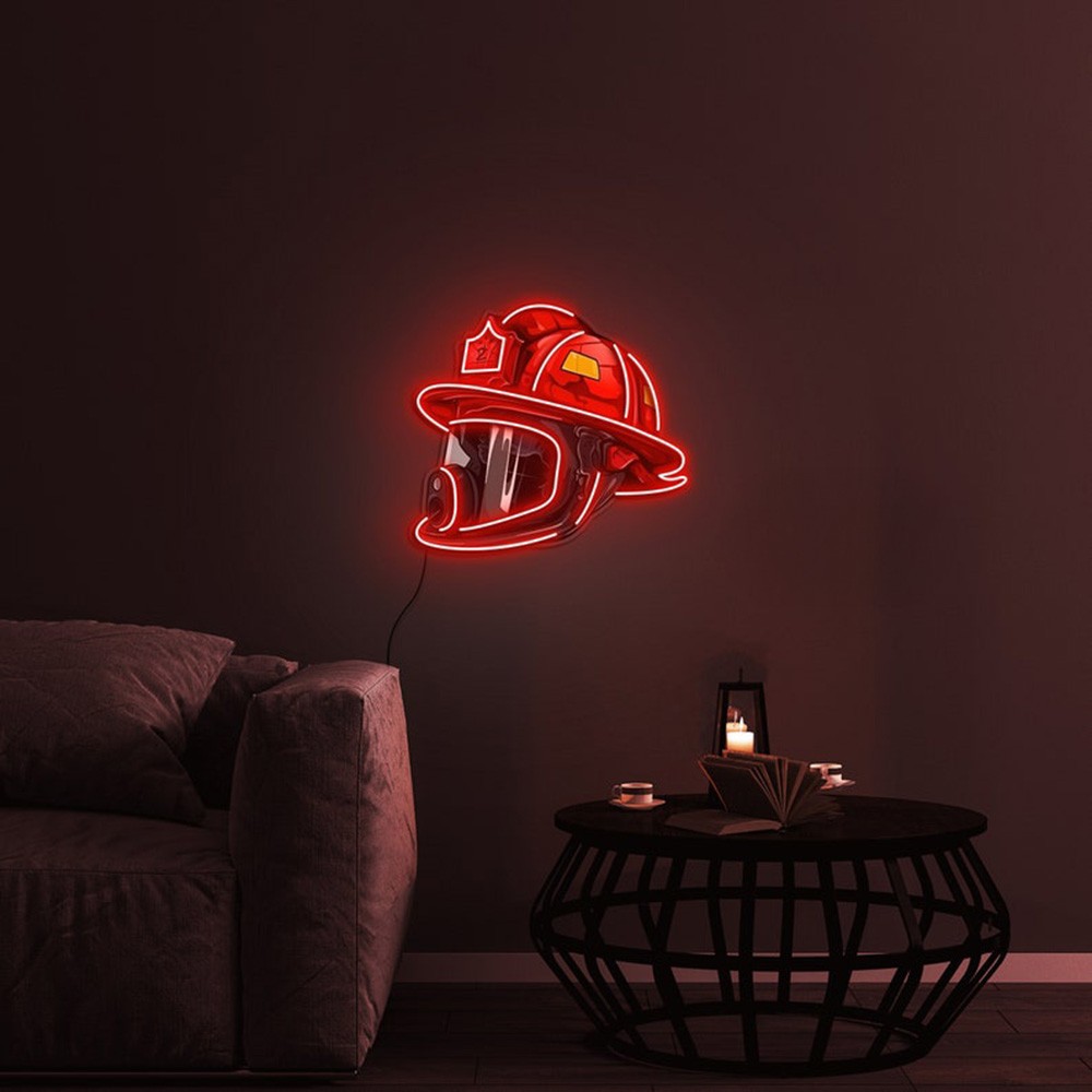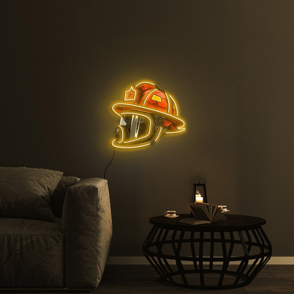 Firefighter Helmet Neon Sign and show your appreciation for firefighters in style!