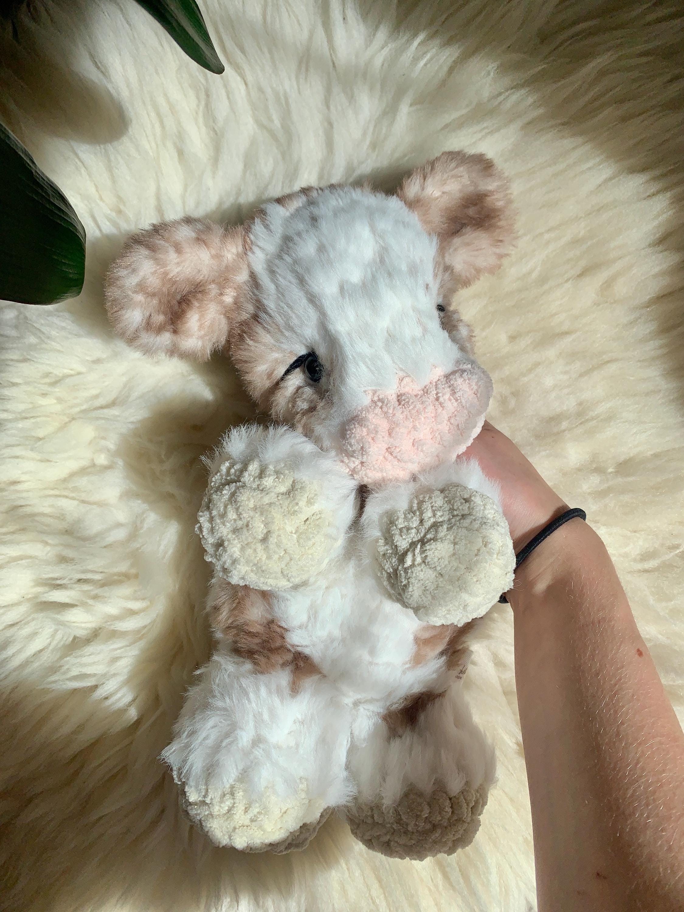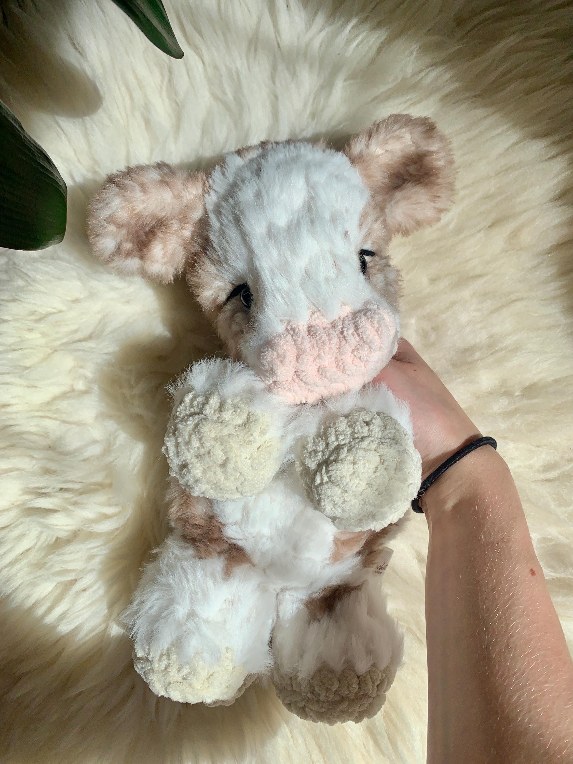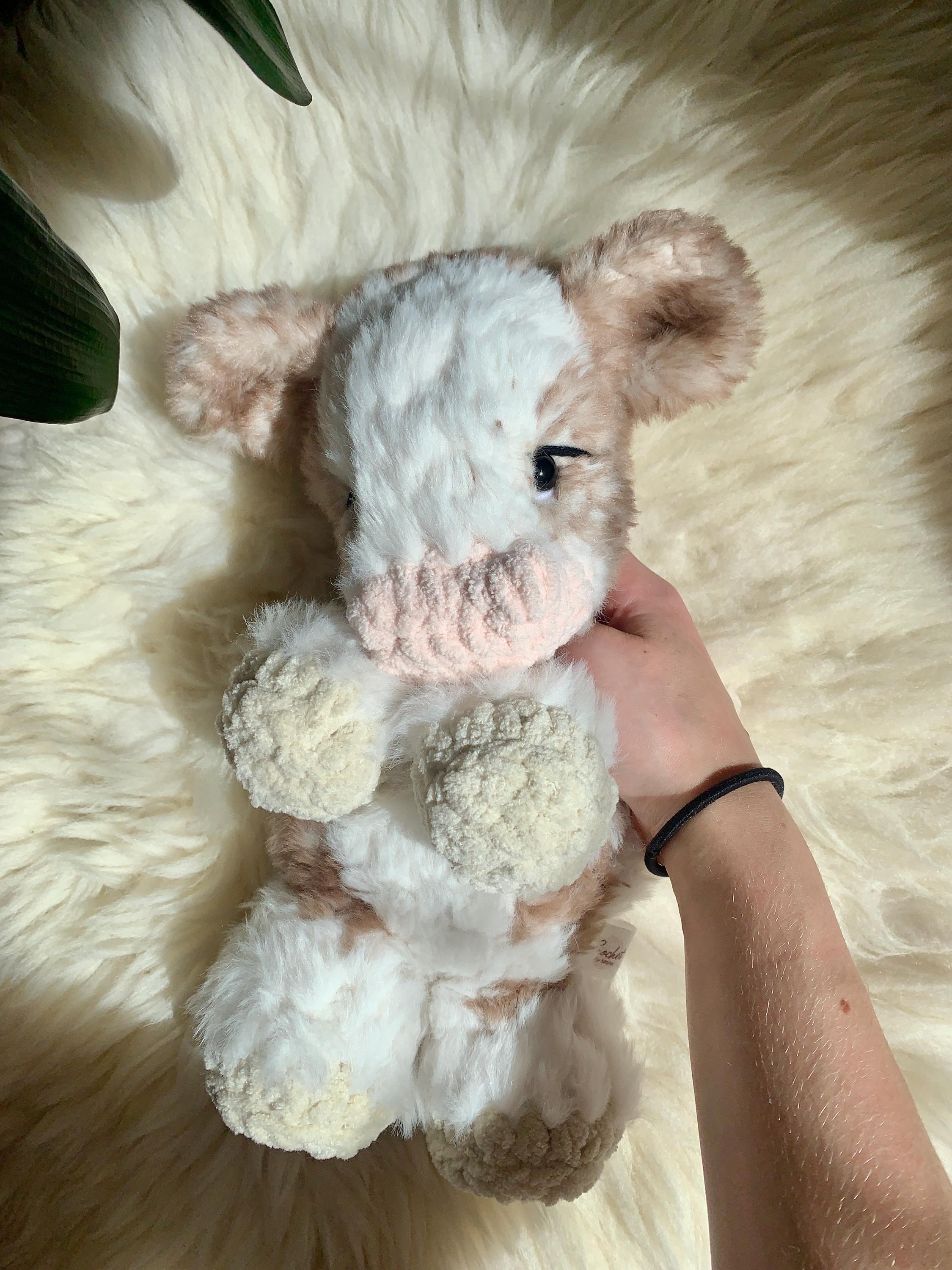 Crochet Fluffy Snuggler Cow, this gorgeous cow is one of my most loved and requested plushies! The softest plushie :)