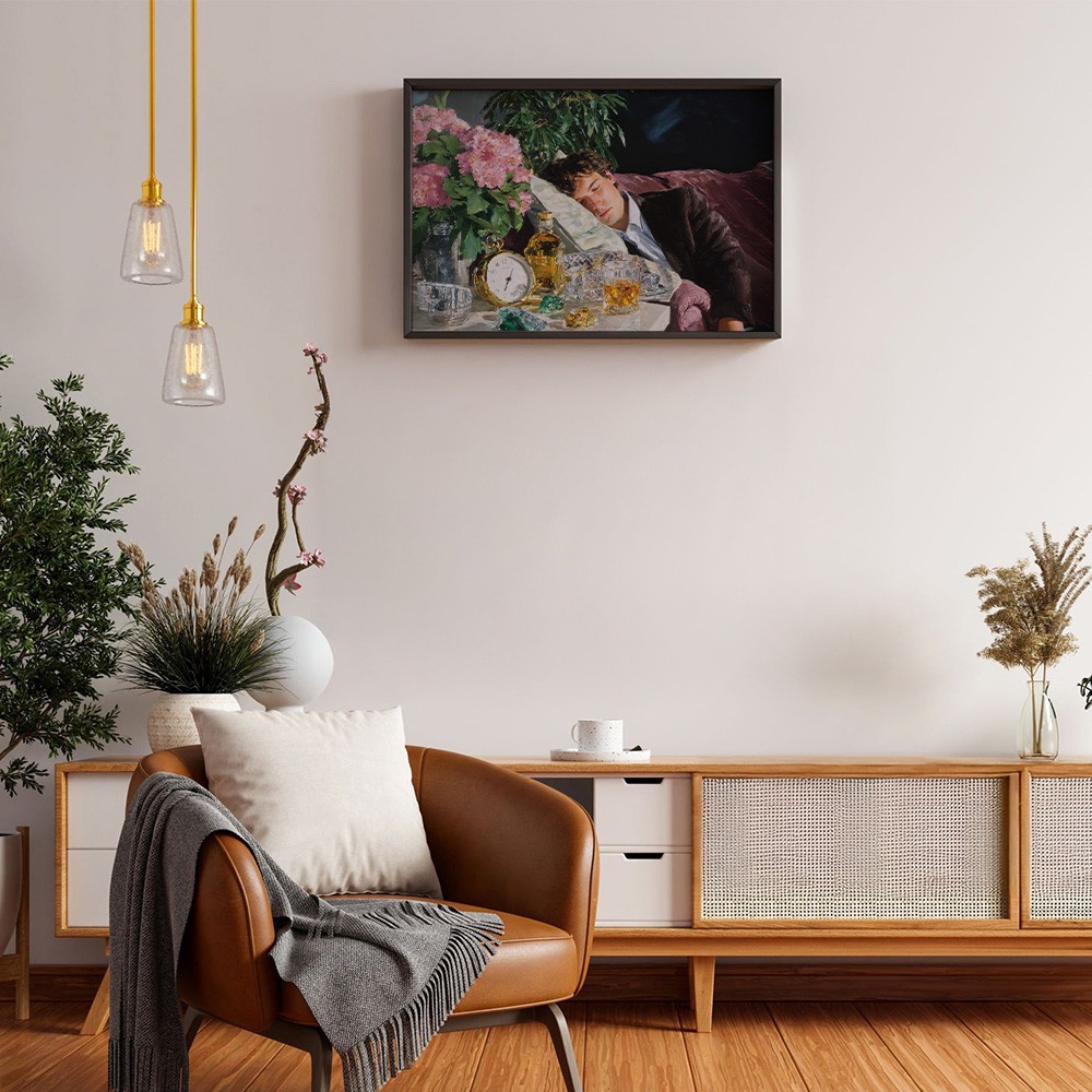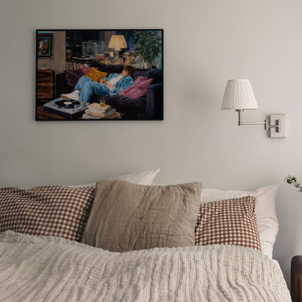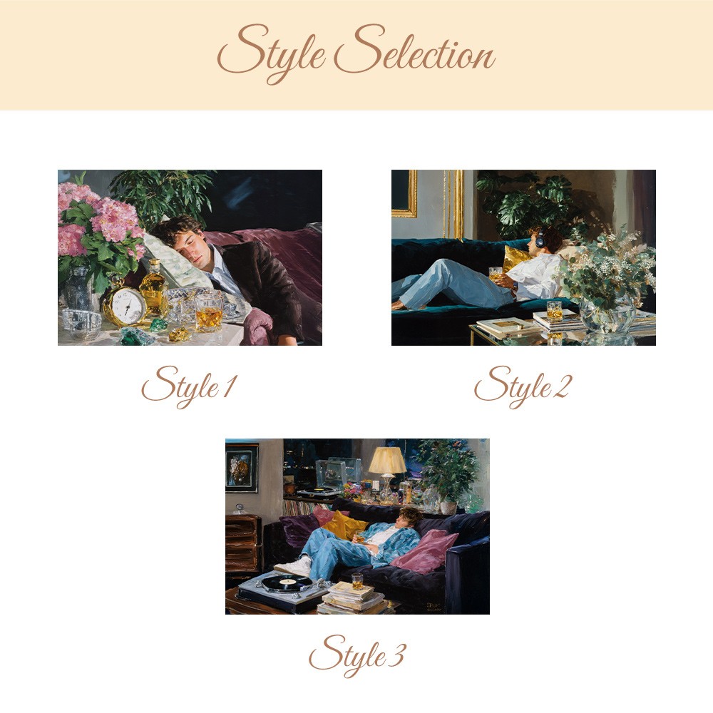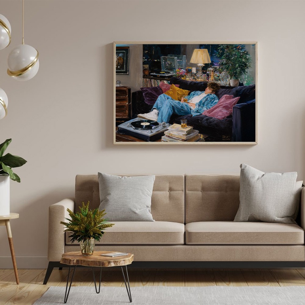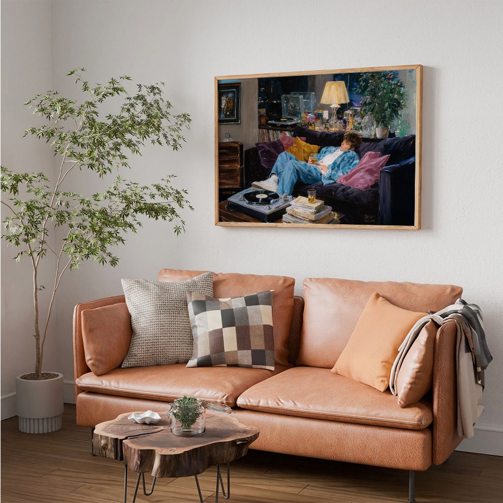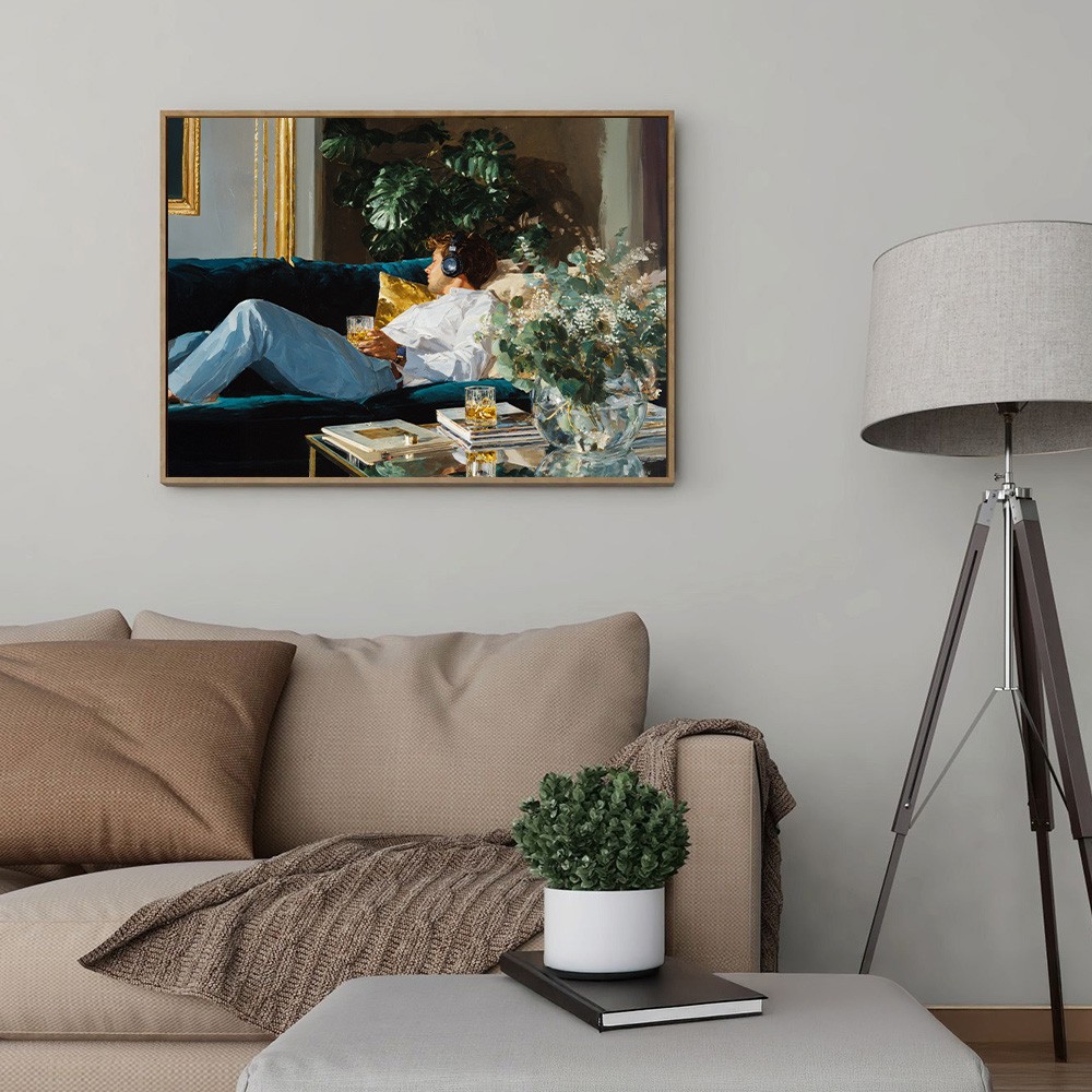 This wall art painting adopts the classic oil painting style, recreating the scene of a man leaning comfortably on the sofa. The picture has soft tones and delicate brushstrokes, overflowing with warmth and humanity. High-quality canvas printing ensures full colors and authentic textures. It can be customized with frame or frameless mounting according to needs, perfectly integrating the artwork into the home space.