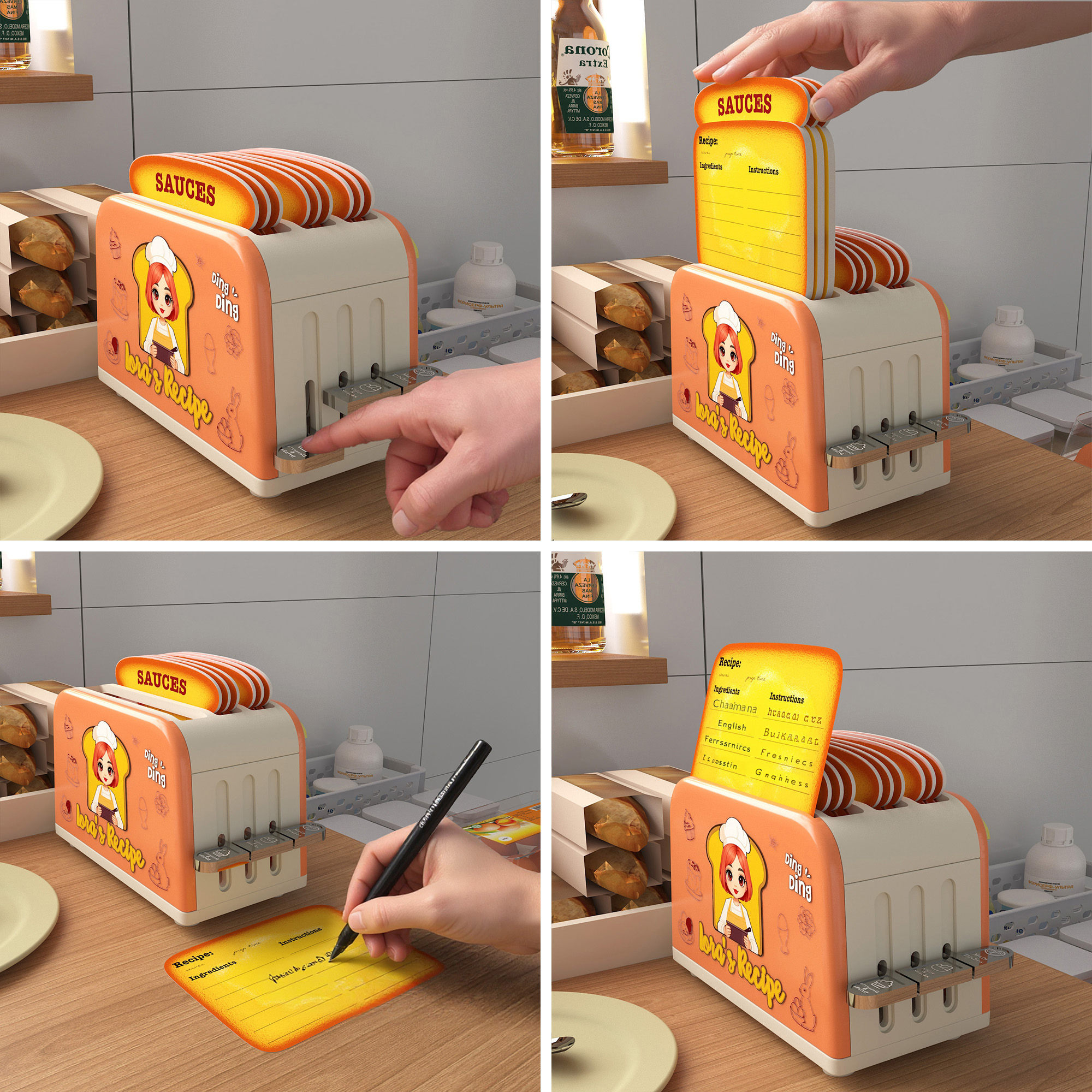 Key Features: The toaster-shaped recipe box is both fun and collectible, making it a perfect addition to your kitchen decor.Simply press the button for the corresponding recipe category, and recipe cards shaped like slices of toast will pop up, instantly launching your culinary journey!