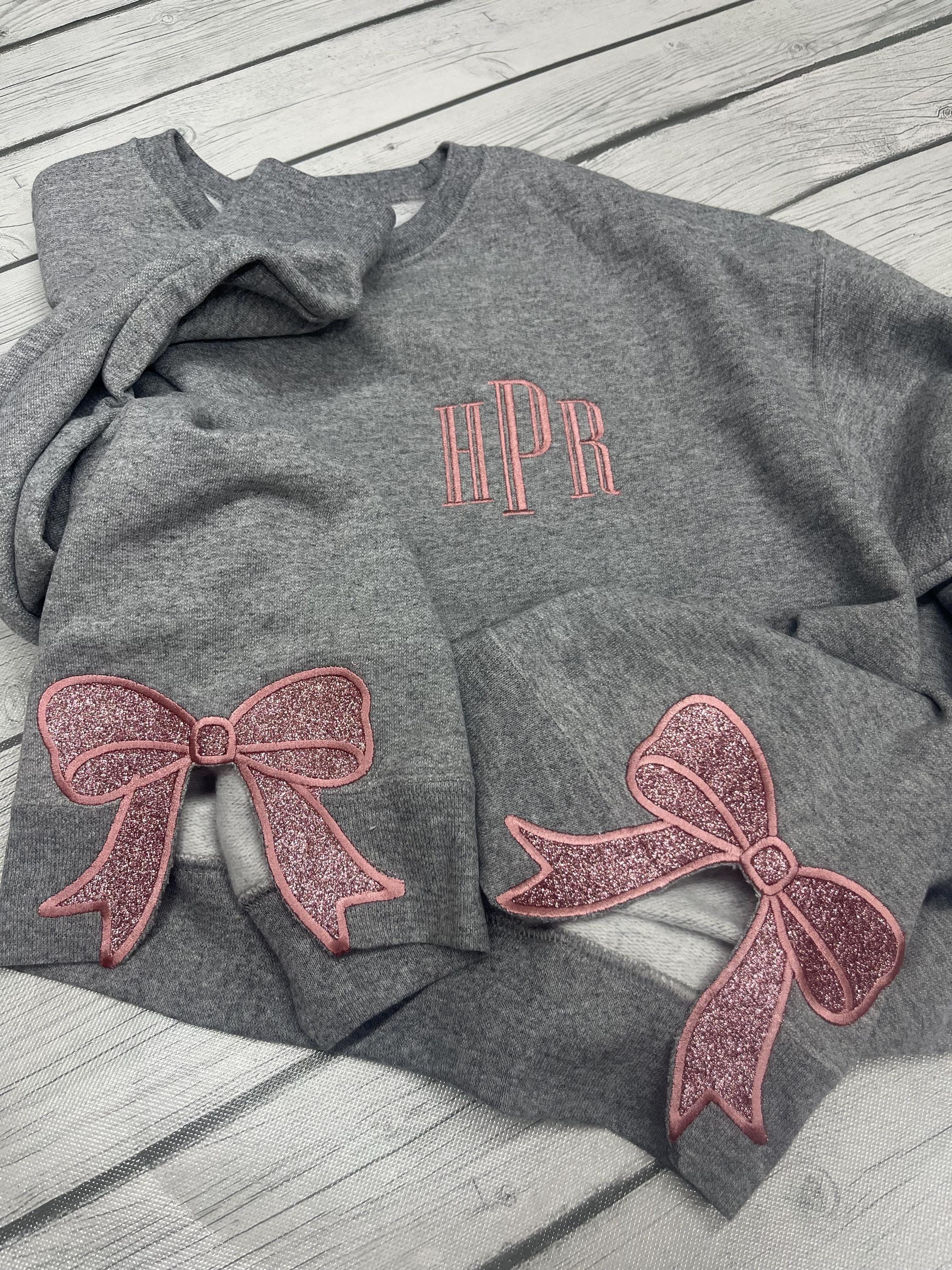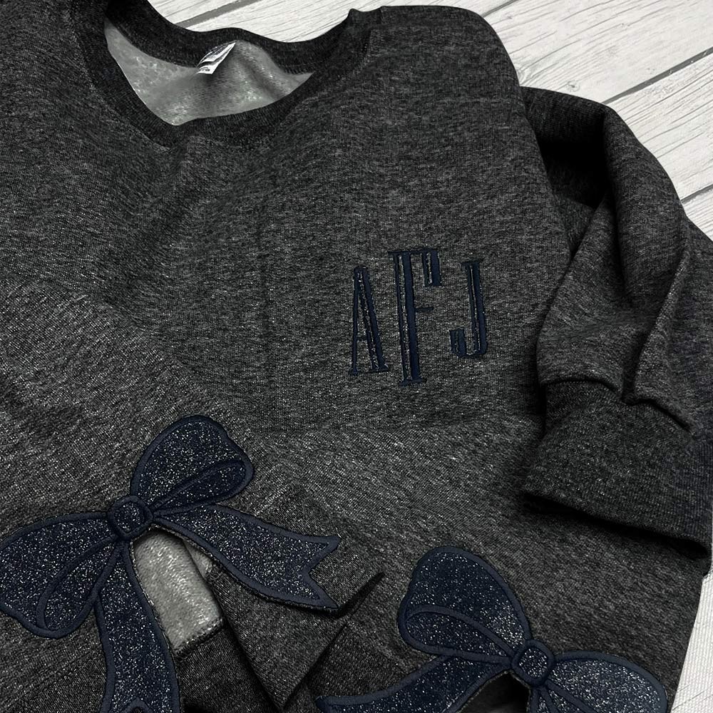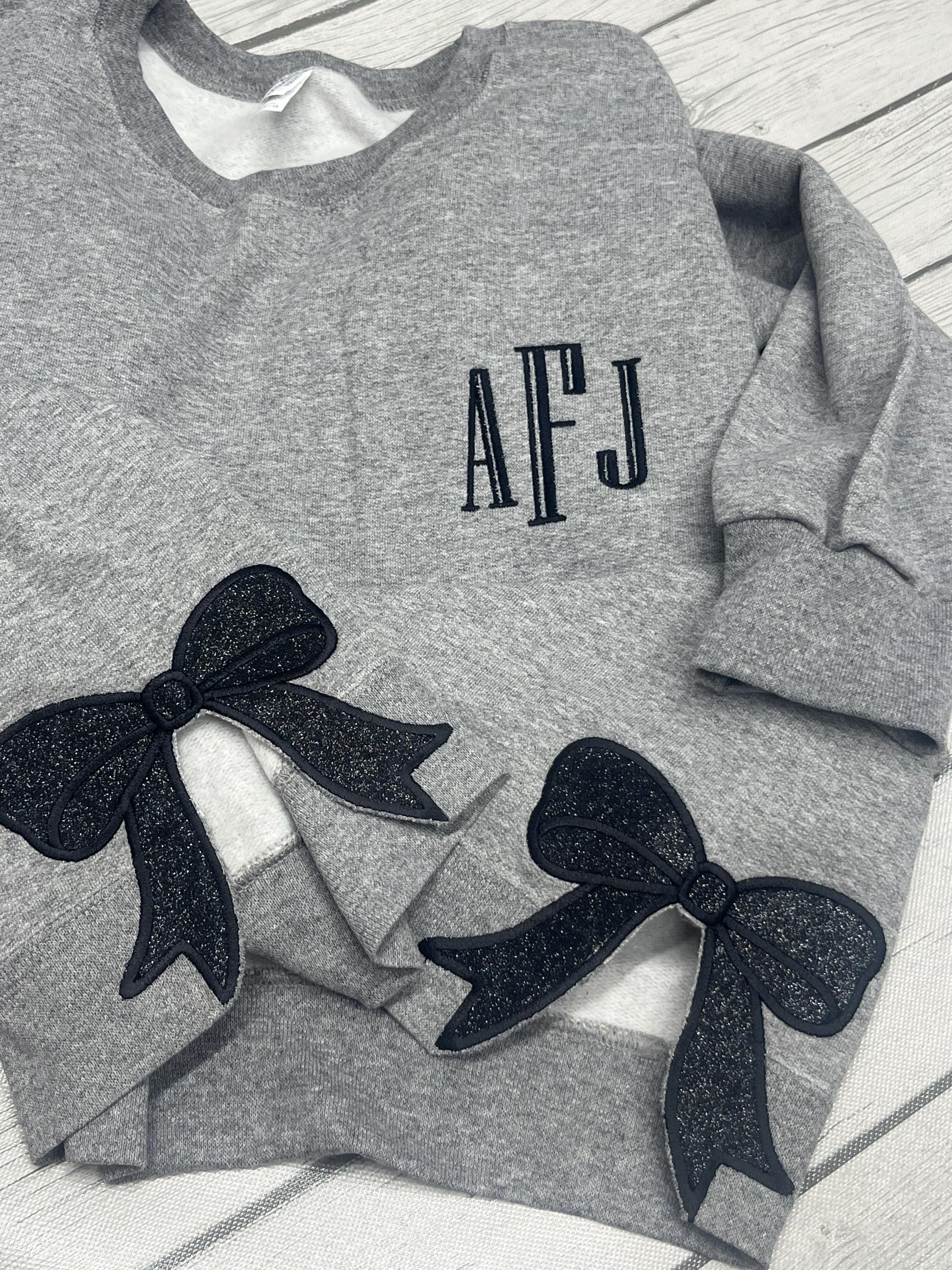 This adorable, sparkly, bow cut out sweatshirt can be perfectly paired with a pair of leggings for a comfy day!
