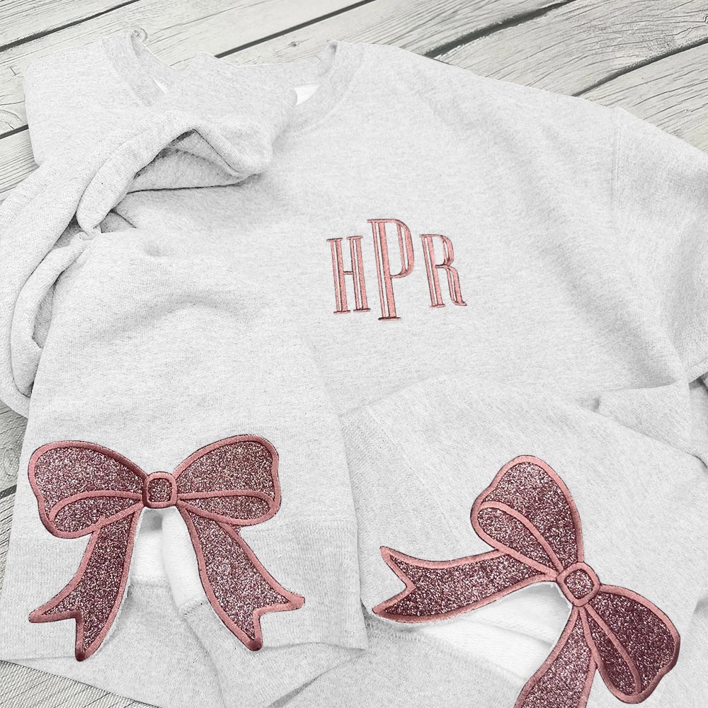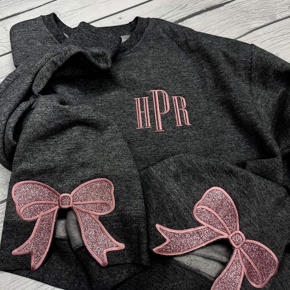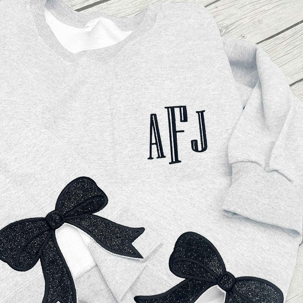 This adorable, sparkly, bow cut out sweatshirt can be perfectly paired with a pair of leggings for a comfy day!