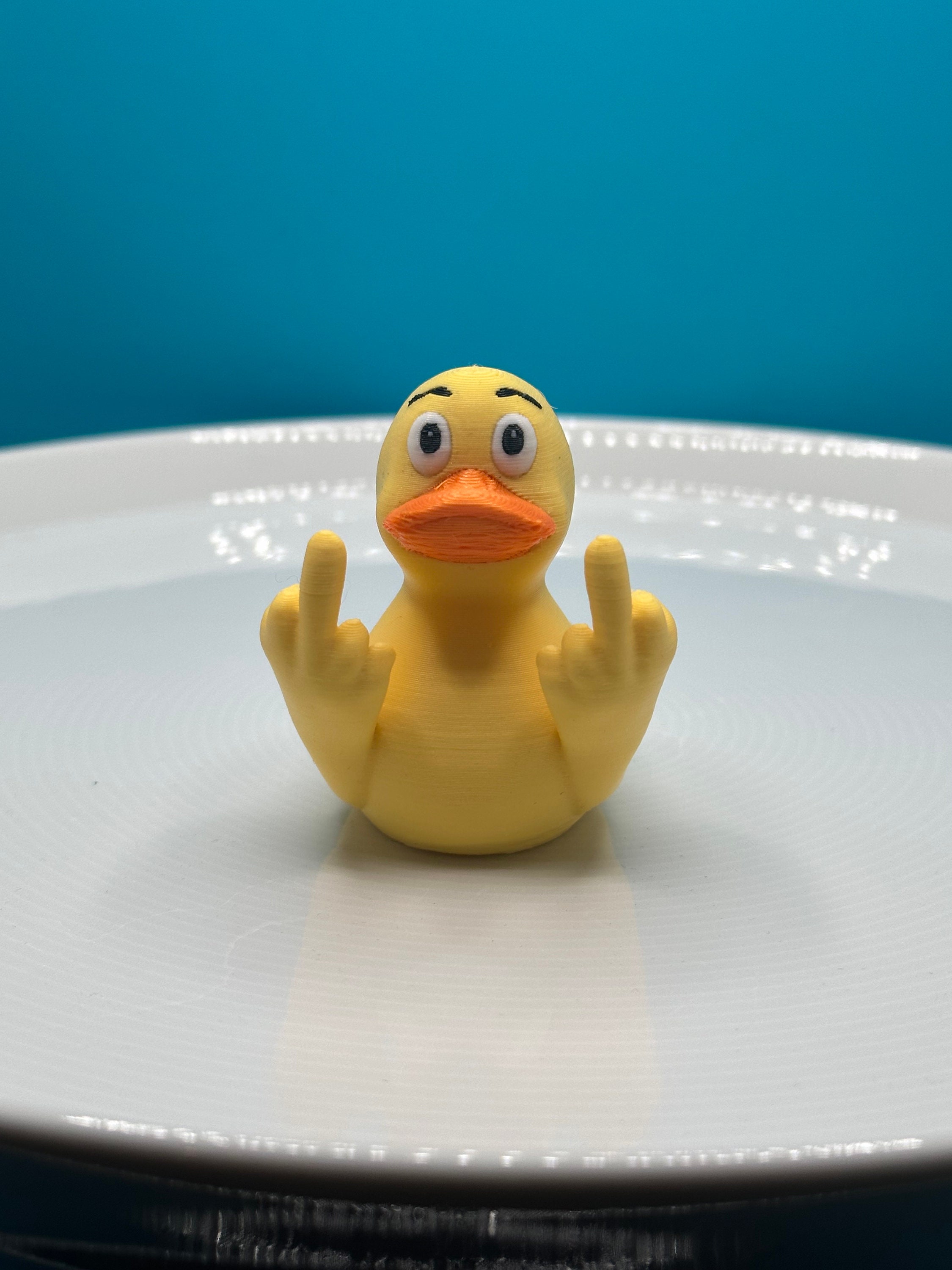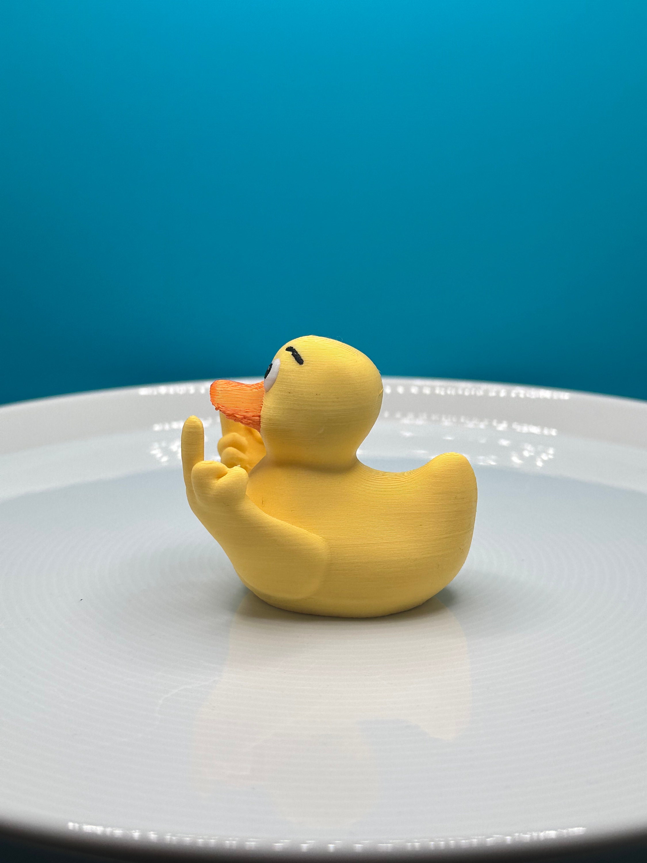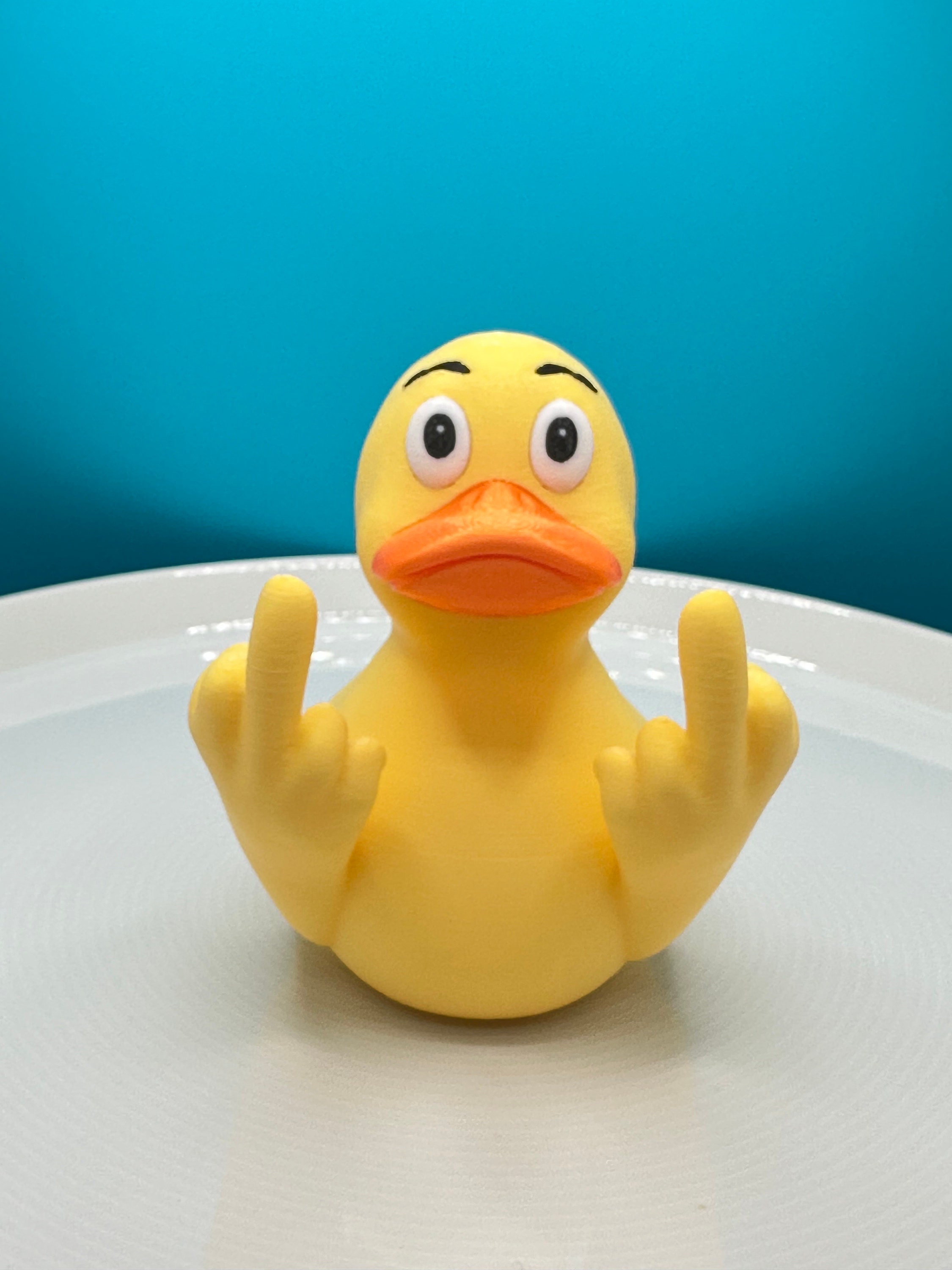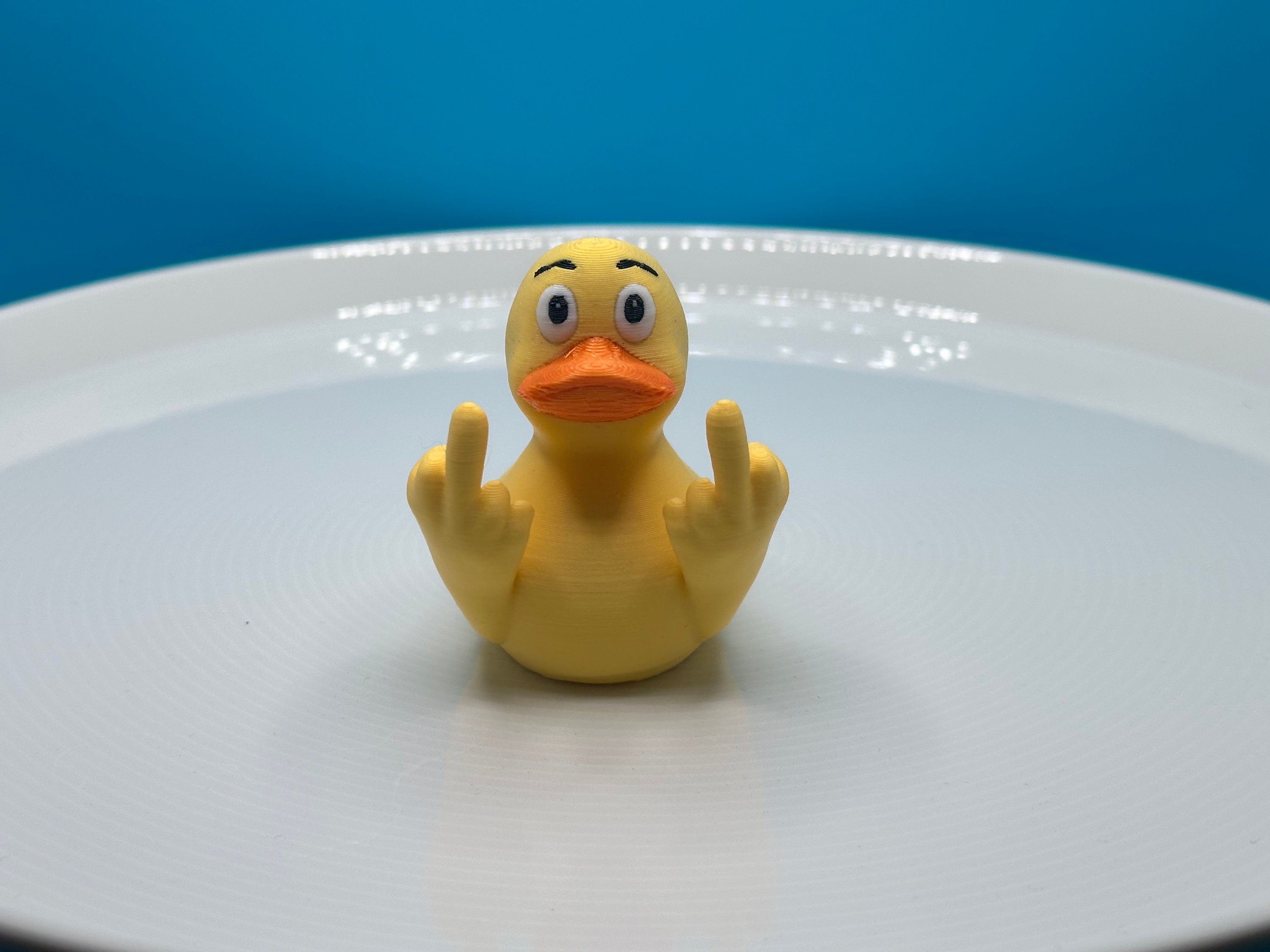 Custom 3D Printed Duck - Welcome one and all to our brilliant series of funny and sassy ducks ready to show off their cheeky side! Introducing our newly curated, absolutely hilarious middle finger duck. Just the perfect gag gift to lighten up any mood, our cute little duckie never fails to break the ice with its audacious humor. This humorous gem grants a playful and clever way to say "duck you", making it the ultimate white elephant gift.