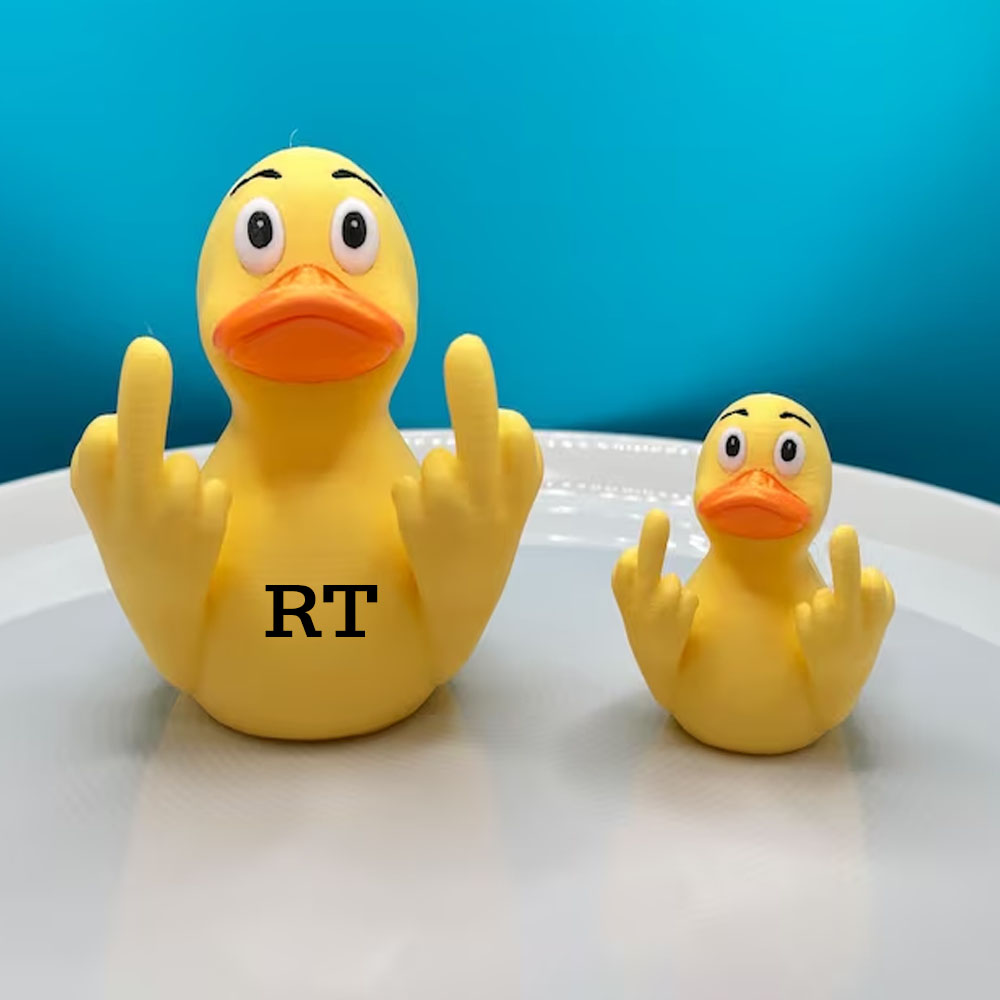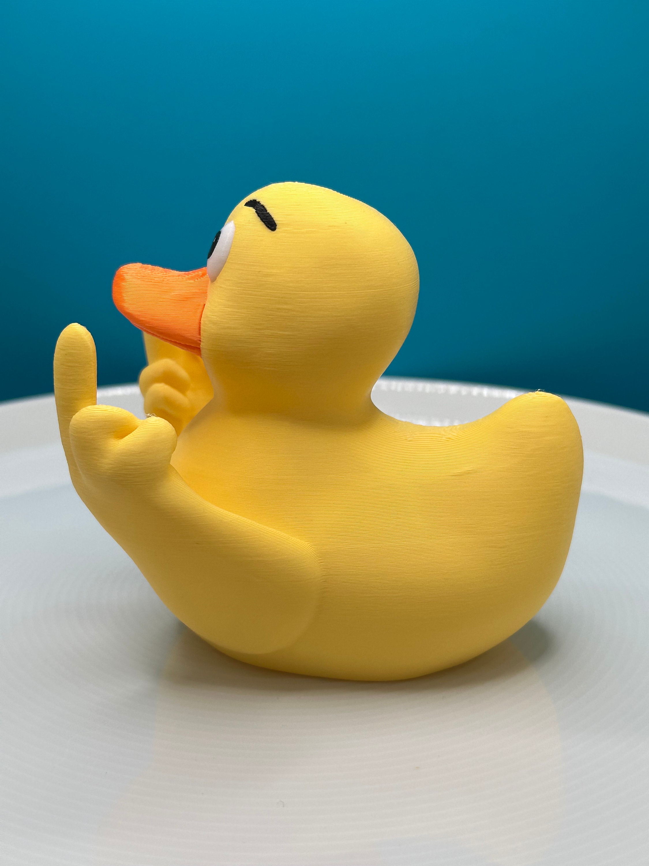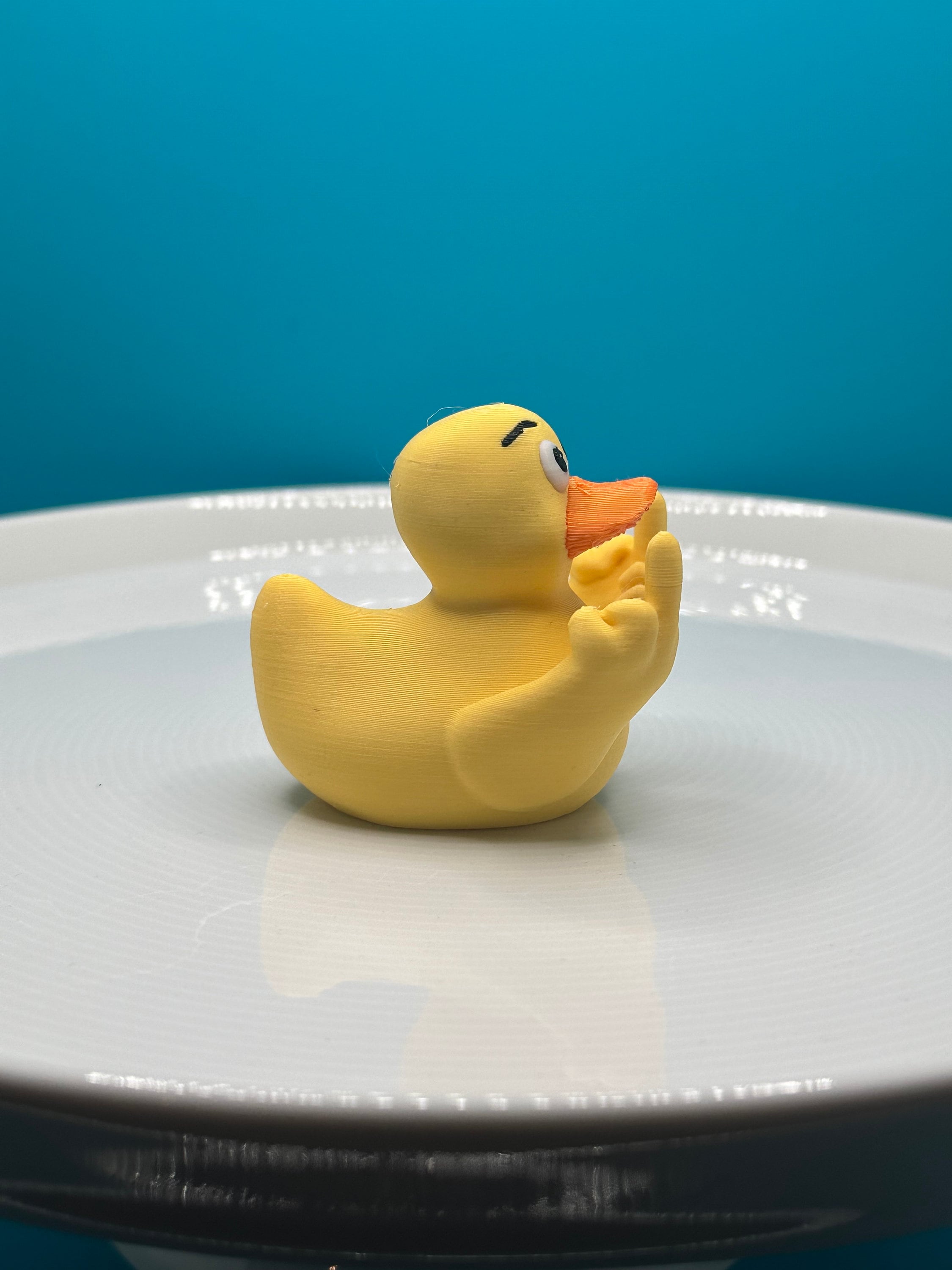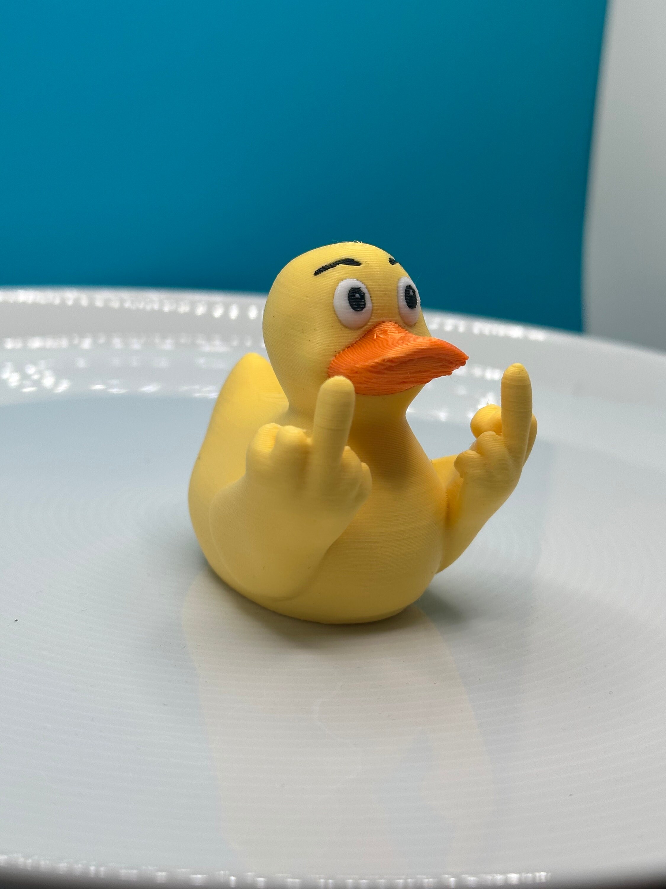 Custom 3D Printed Duck - Welcome one and all to our brilliant series of funny and sassy ducks ready to show off their cheeky side! Introducing our newly curated, absolutely hilarious middle finger duck. Just the perfect gag gift to lighten up any mood, our cute little duckie never fails to break the ice with its audacious humor. This humorous gem grants a playful and clever way to say "duck you", making it the ultimate white elephant gift.