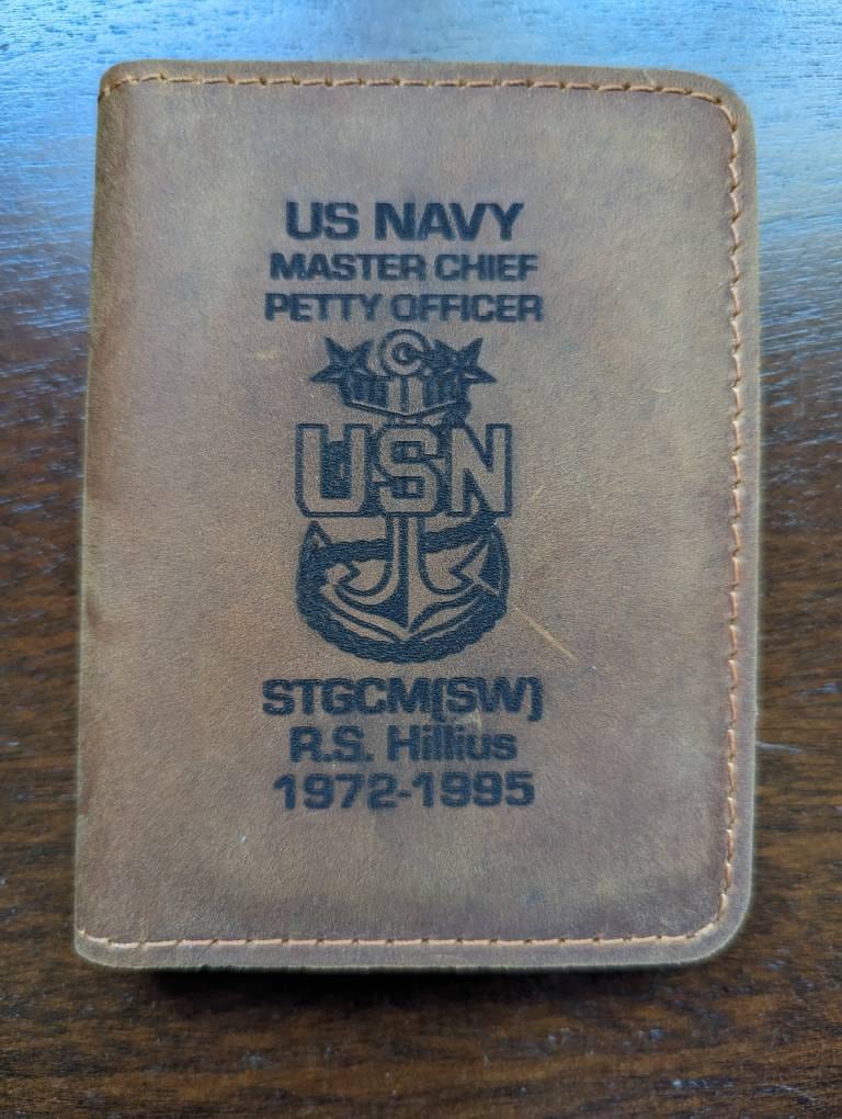 This leather wallet is a great gift for promotions, graduations, PCS/ETS, Change of Command, Mother's/Father's Day, Christmas, or just for yourself.