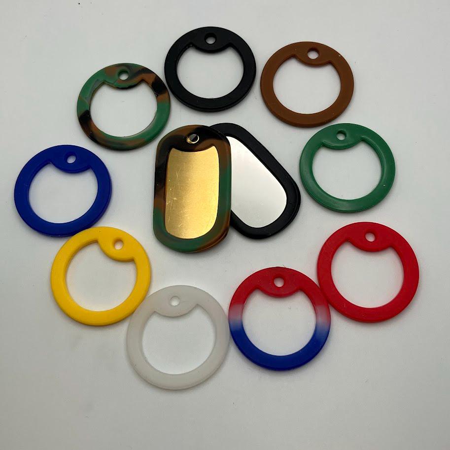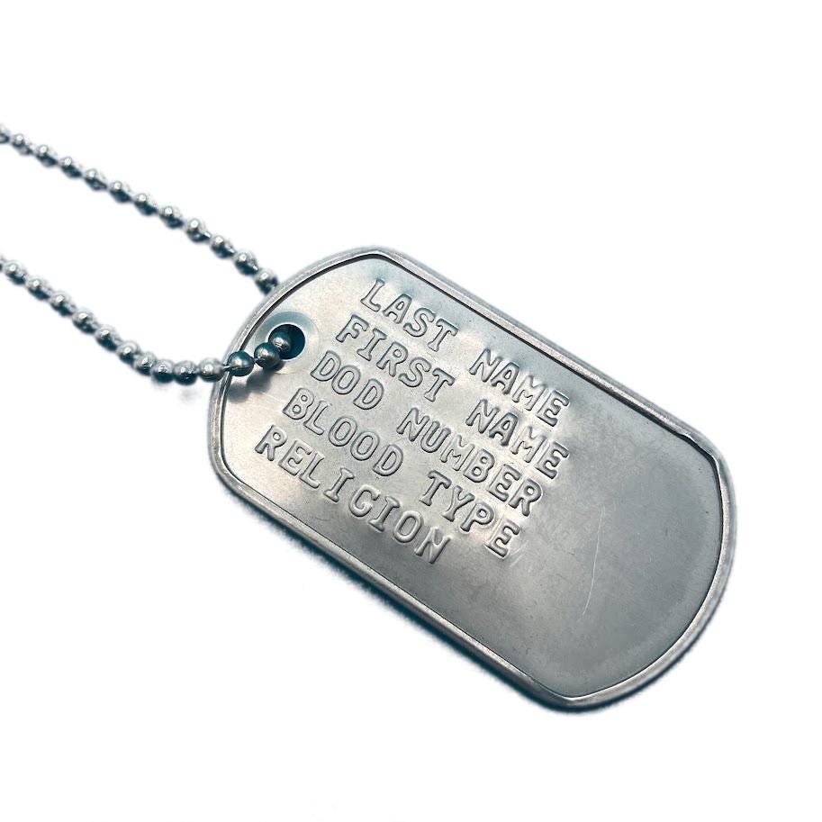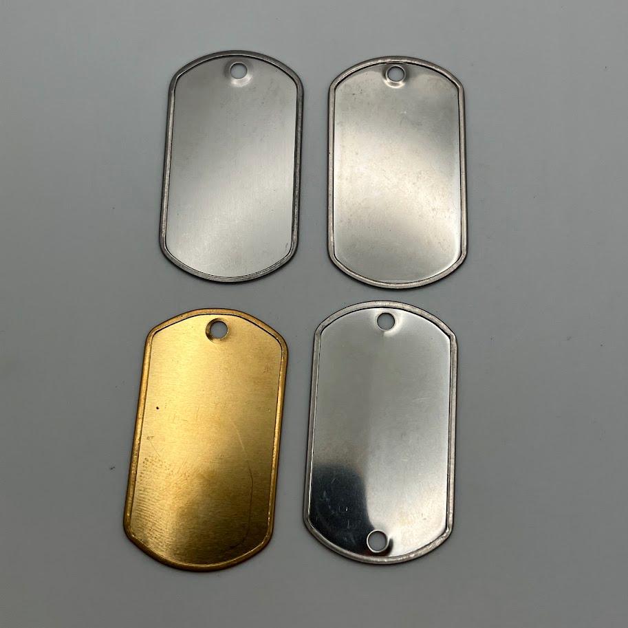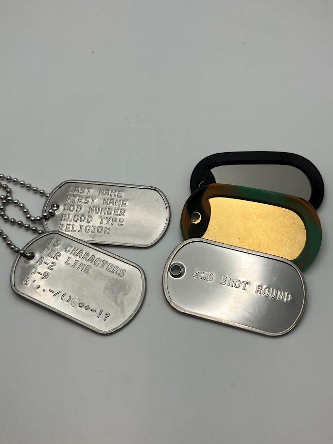 Dog tags made with stainless steel and embossed. Available in several different color or style options with color options for the silencers as well. Silver is the standard tag style and red is the standard medical allergy tags.