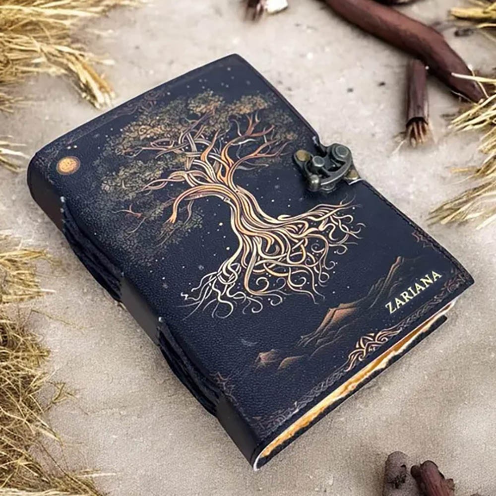 400 Page Large Grimoire leather journal, Print Tree of Life Journal, Blank spell book book of shadows Leather Celestial Gifts For Him Her