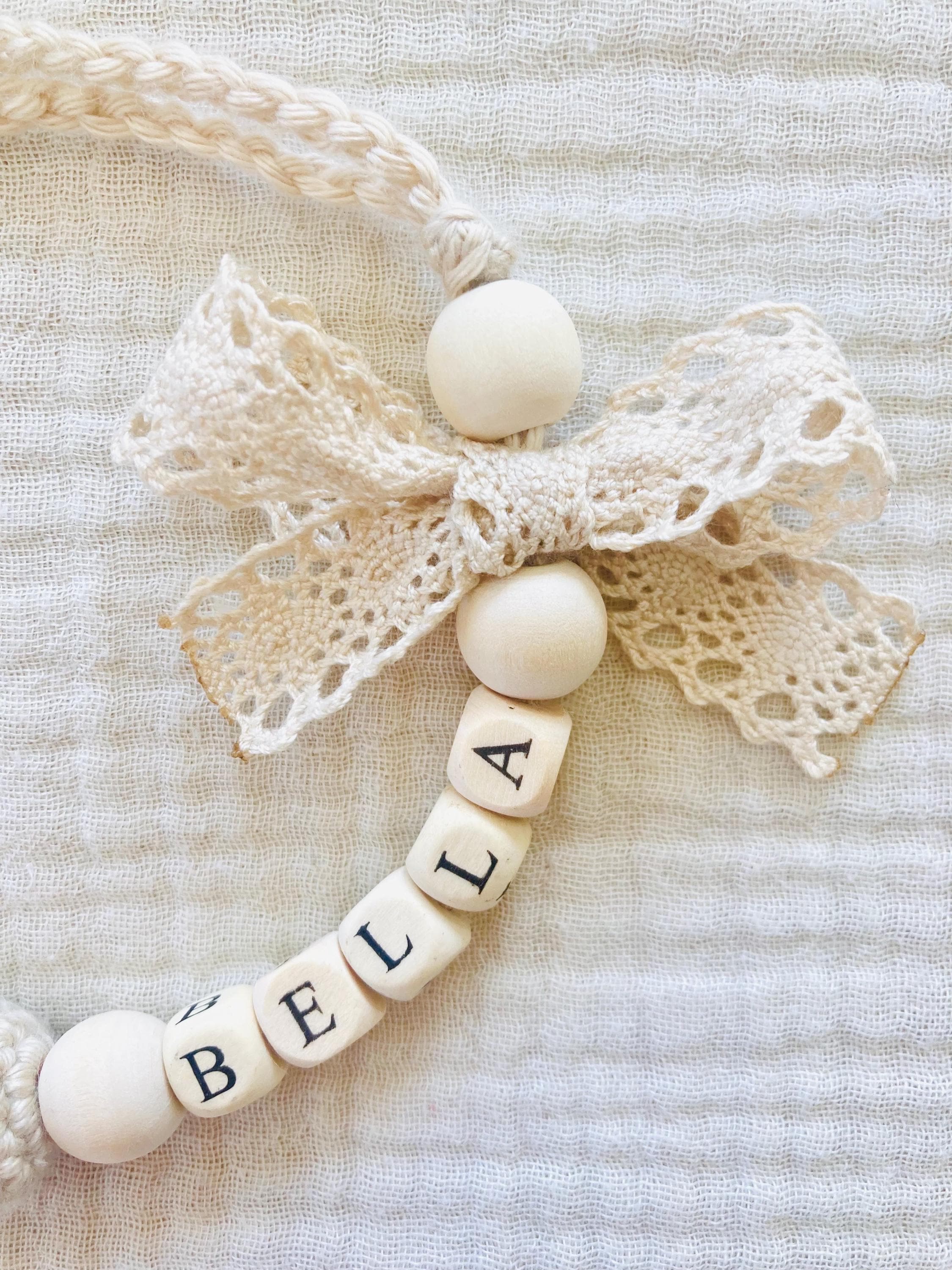 Looking for a unique baby gift? ???? This custom baby name chain is the perfect blend of practicality and charm! Handmade with love, it’s an adorable baby keepsake that adds a touch of vintage-inspired beauty to your little one’s essentials. ????