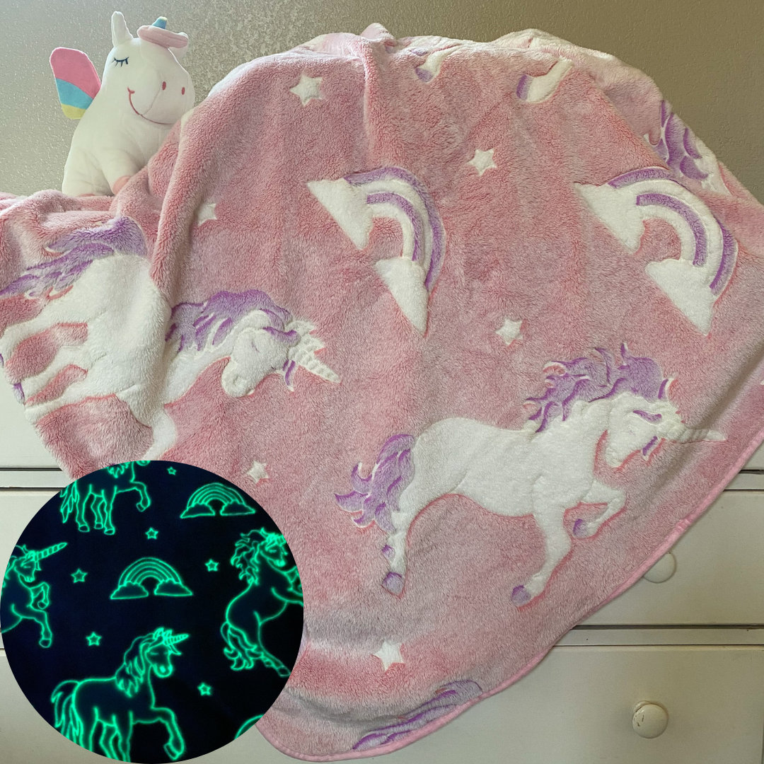 Surprise: Looking for that perfect, unique gift for the girl that LOVES unicorns? They will love the fun design both during the day and the glowing at night. Not to mention, the soft fabric is light enough to go anywhere from nap time to unicorn rides.