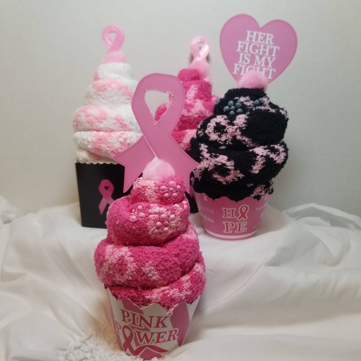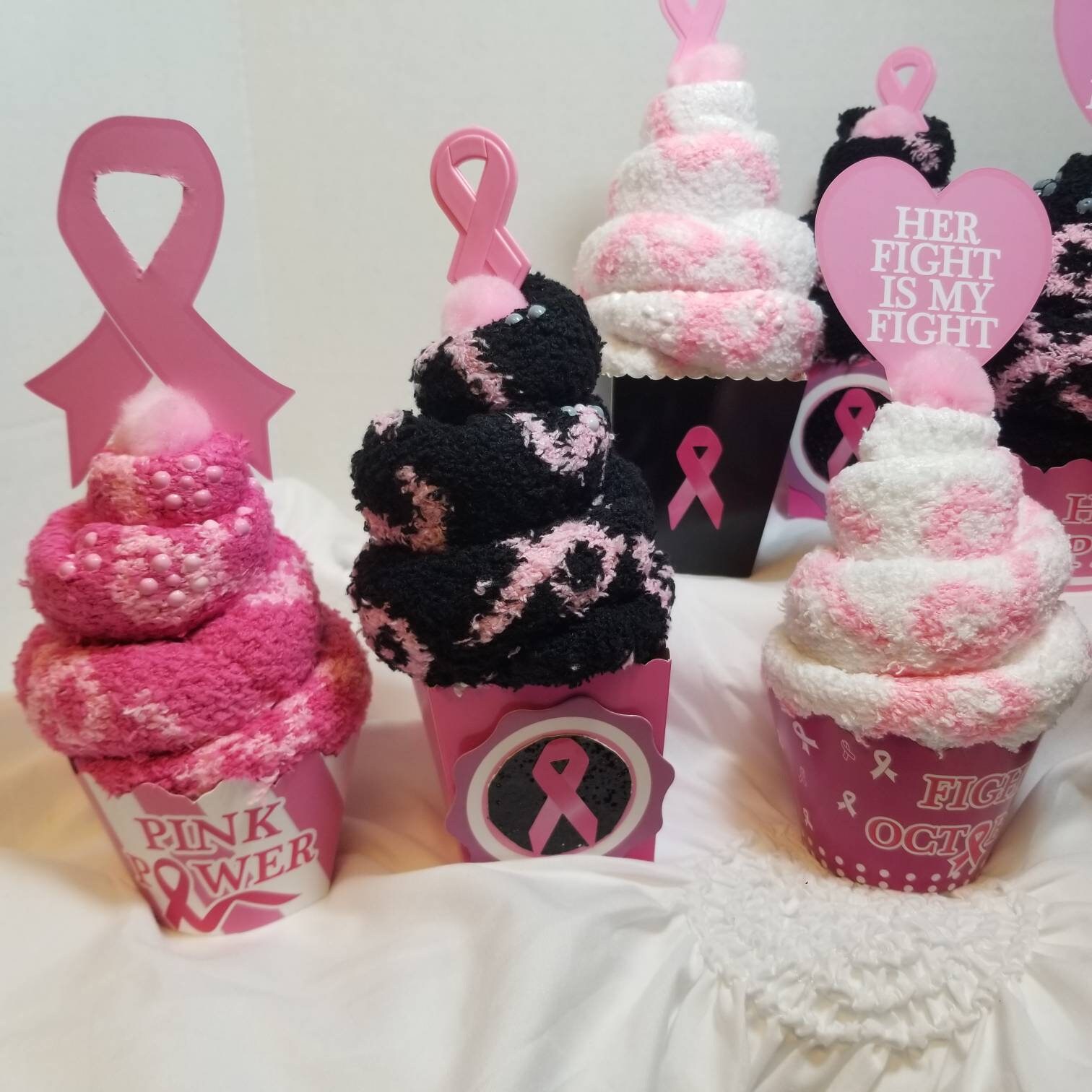 The breast cancer fuzzy sock cupcakes can be given for multiple reasons. You can help celebrate a breast cancer survivor with these fuzzy sock cupcakes. If you know someone that is battling breast cancer, let them know you are in the fight with them by giving them these breast cancer fuzzy socks by showing your support These can also be given for breast cancer awareness. Regardless of the reason, these fuzzy breast cancer socks are a great treat for your feet but are not made to eat. Each fuzzy sock treat cupcake gift comes with 1 pair of fuzzy breast cancer socks in the form of a cupcake in a cupcake cup, a gift tag, and a bow. The gift will be wrapped in cellophane paper. These are a cozy sweet treat.
