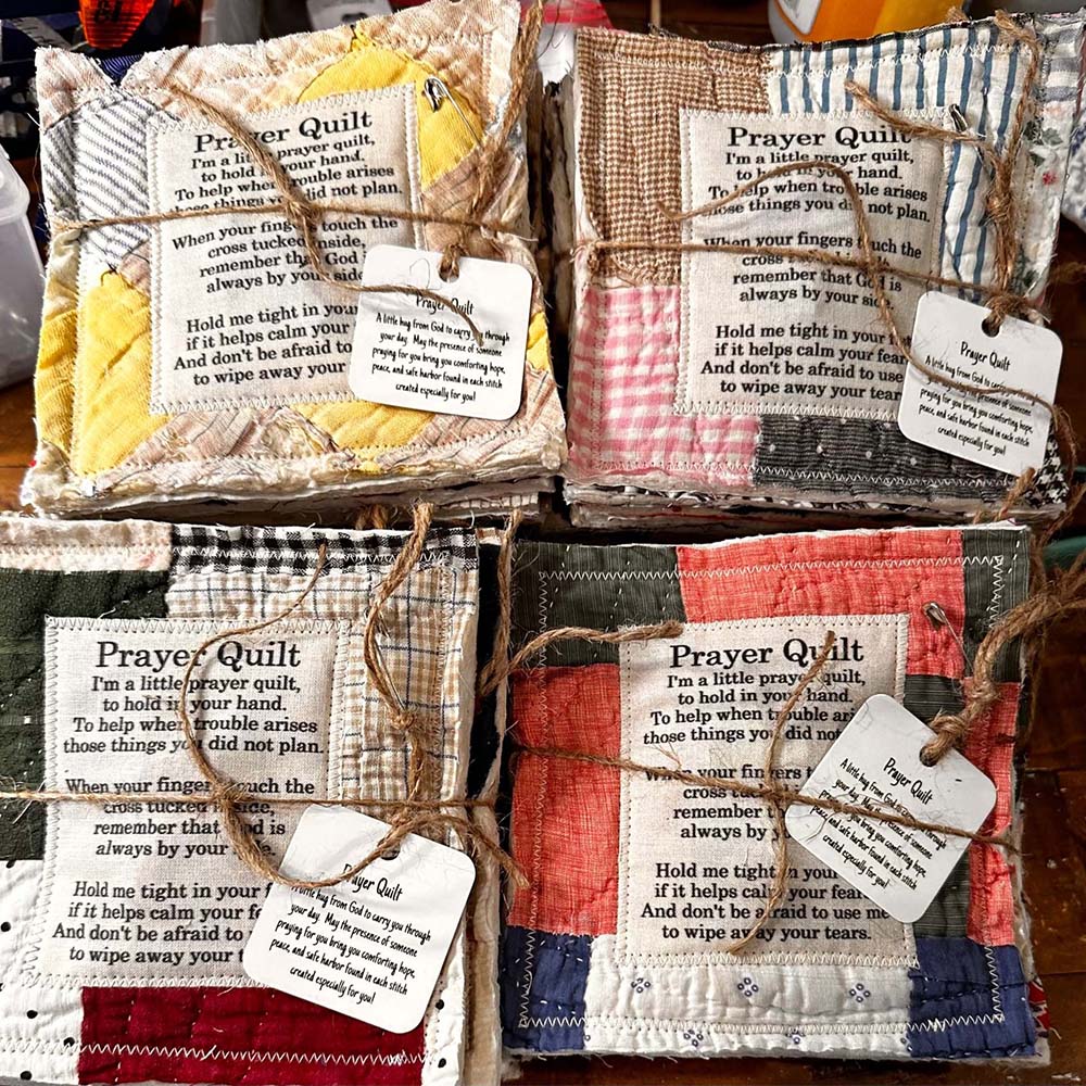 💚The poems are sewn onto carefully selected vintage quilts, and there is a wooden cross sewn into the center of each quilt square, so each time you touch it, you can be reminded that God is always with you.