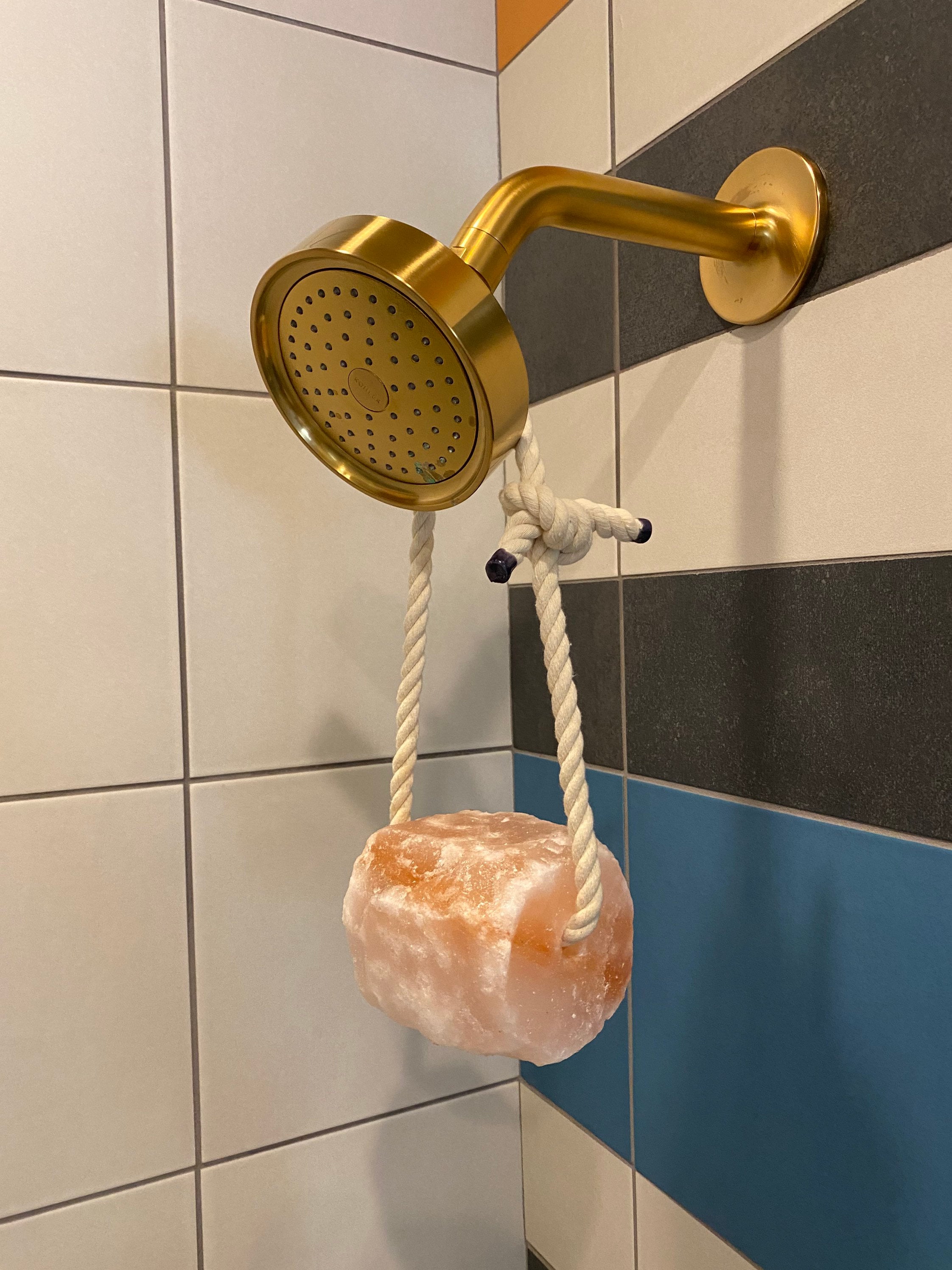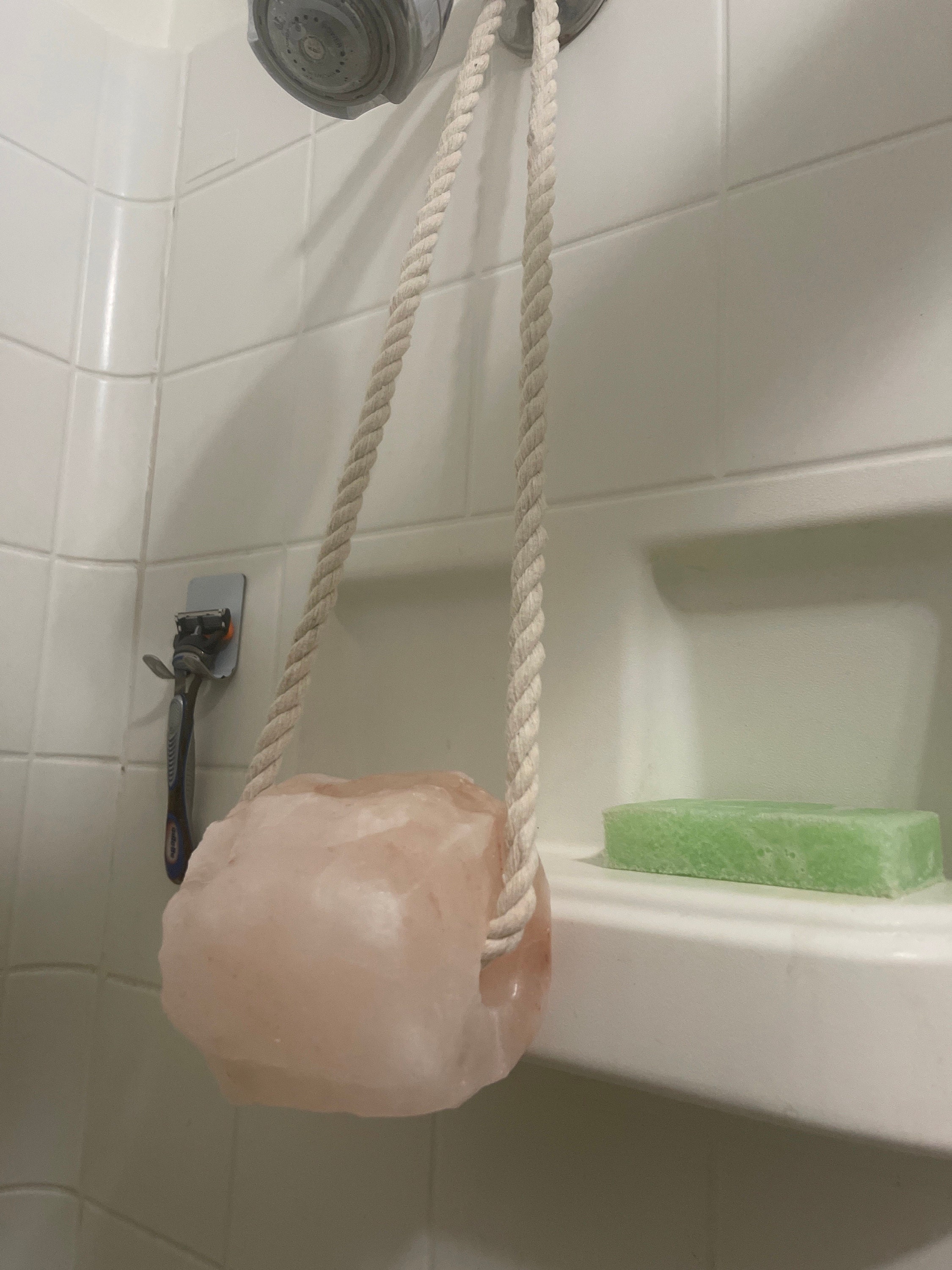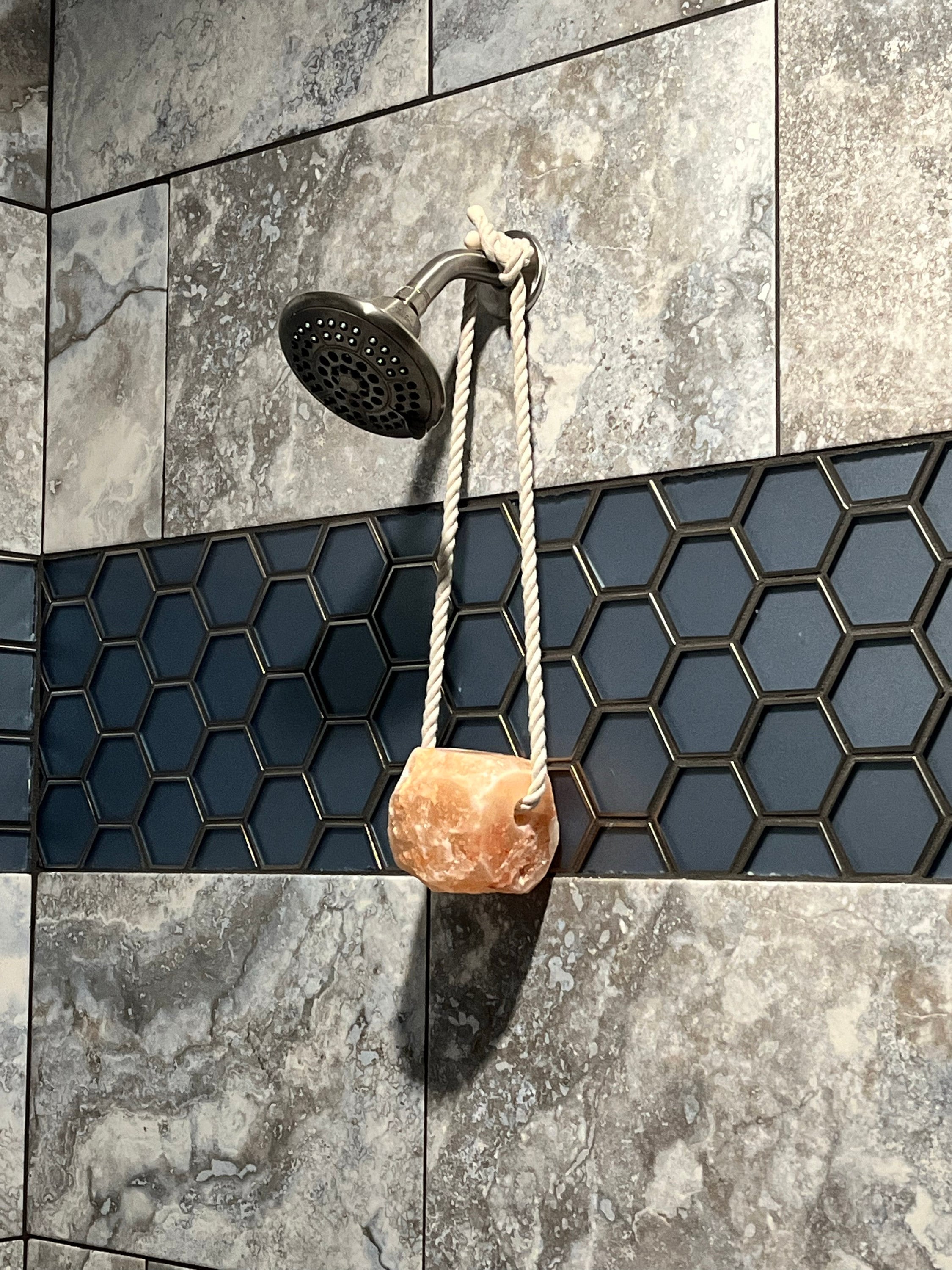 Our pores open up when we are in the steam and water of the shower letting in the toxins all around us. Hang our salt rocks in your shower to purify those toxins out giving you a healthier environment.