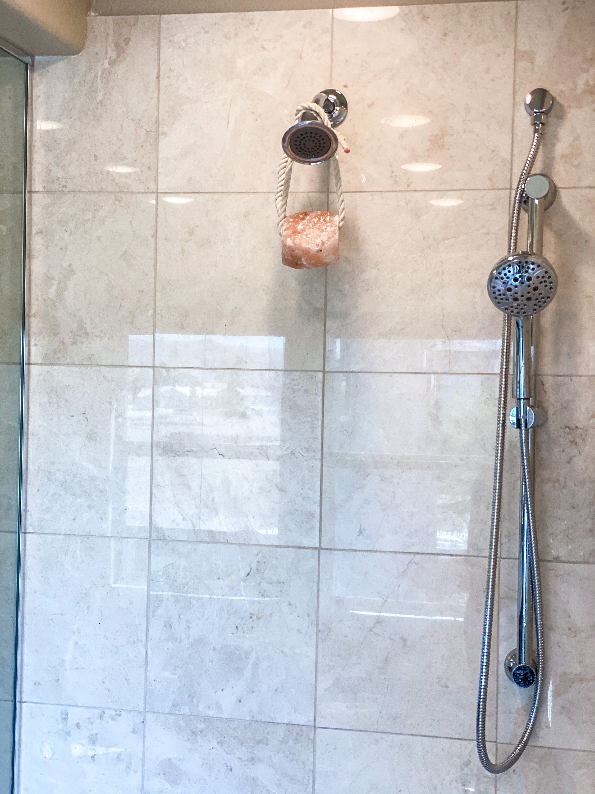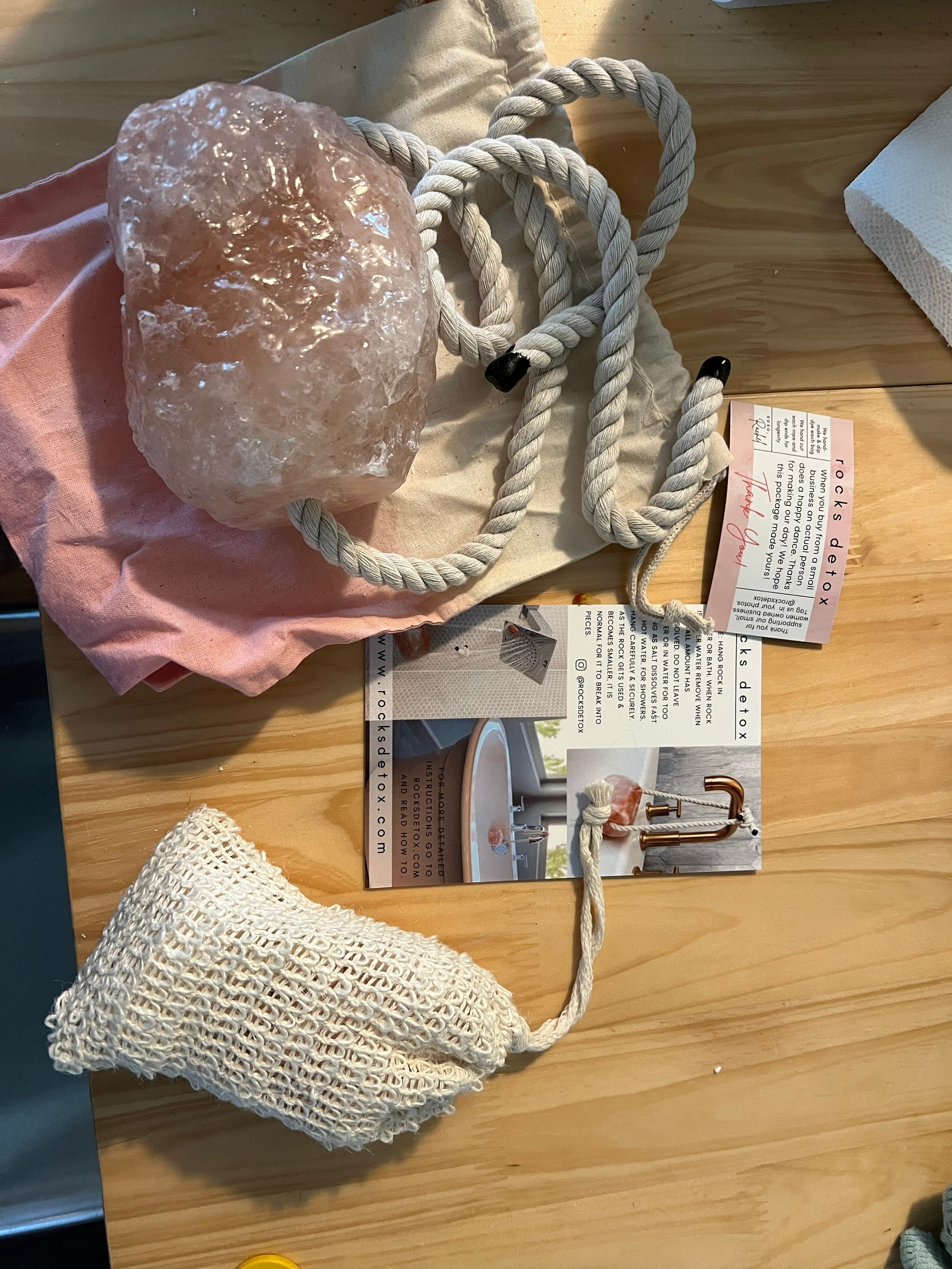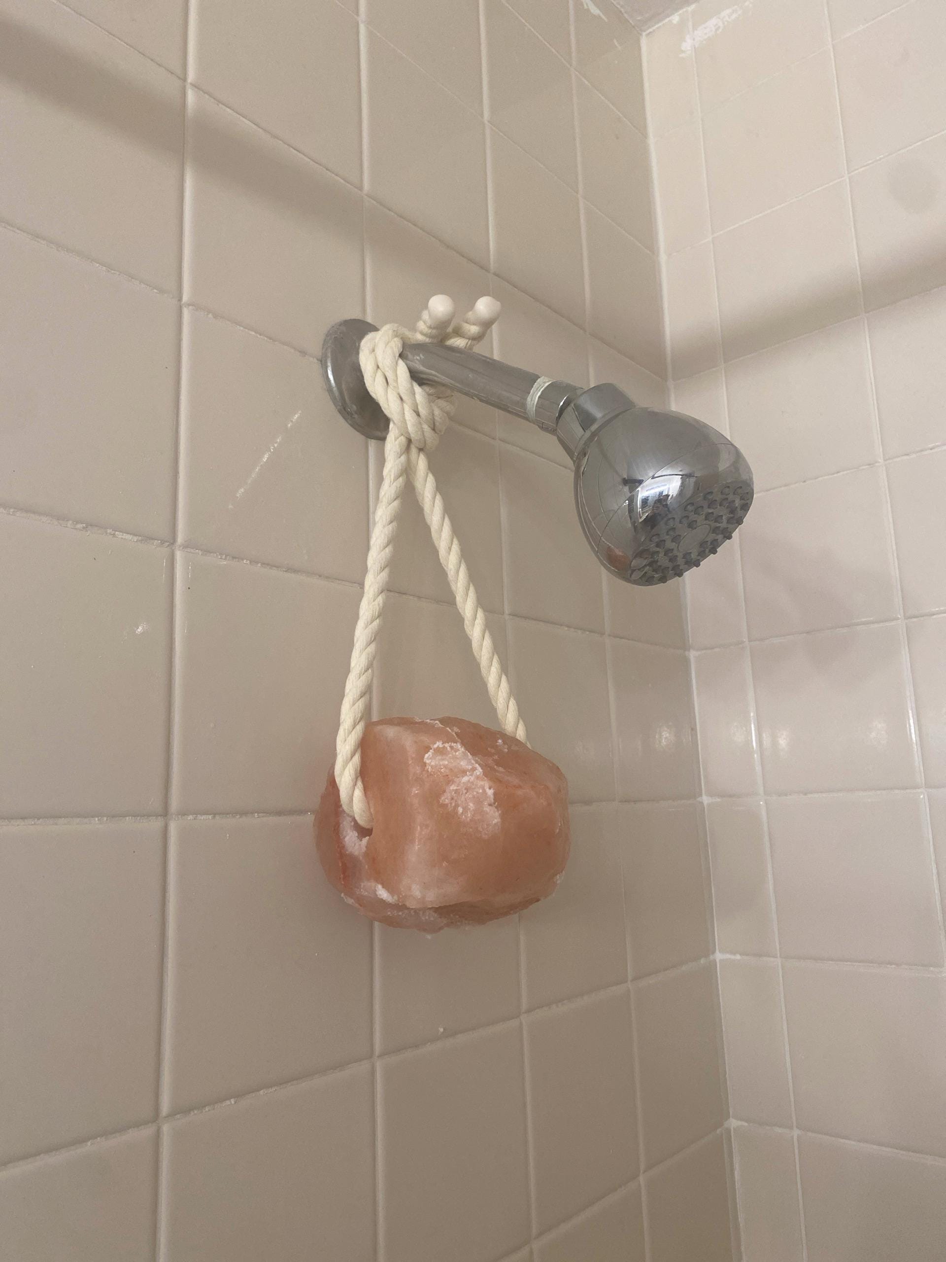 Our pores open up when we are in the steam and water of the shower letting in the toxins all around us. Hang our salt rocks in your shower to purify those toxins out giving you a healthier environment.