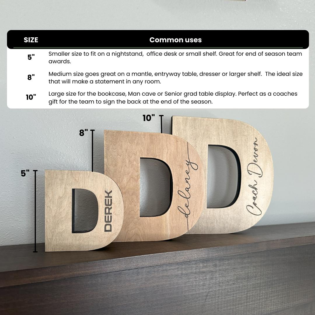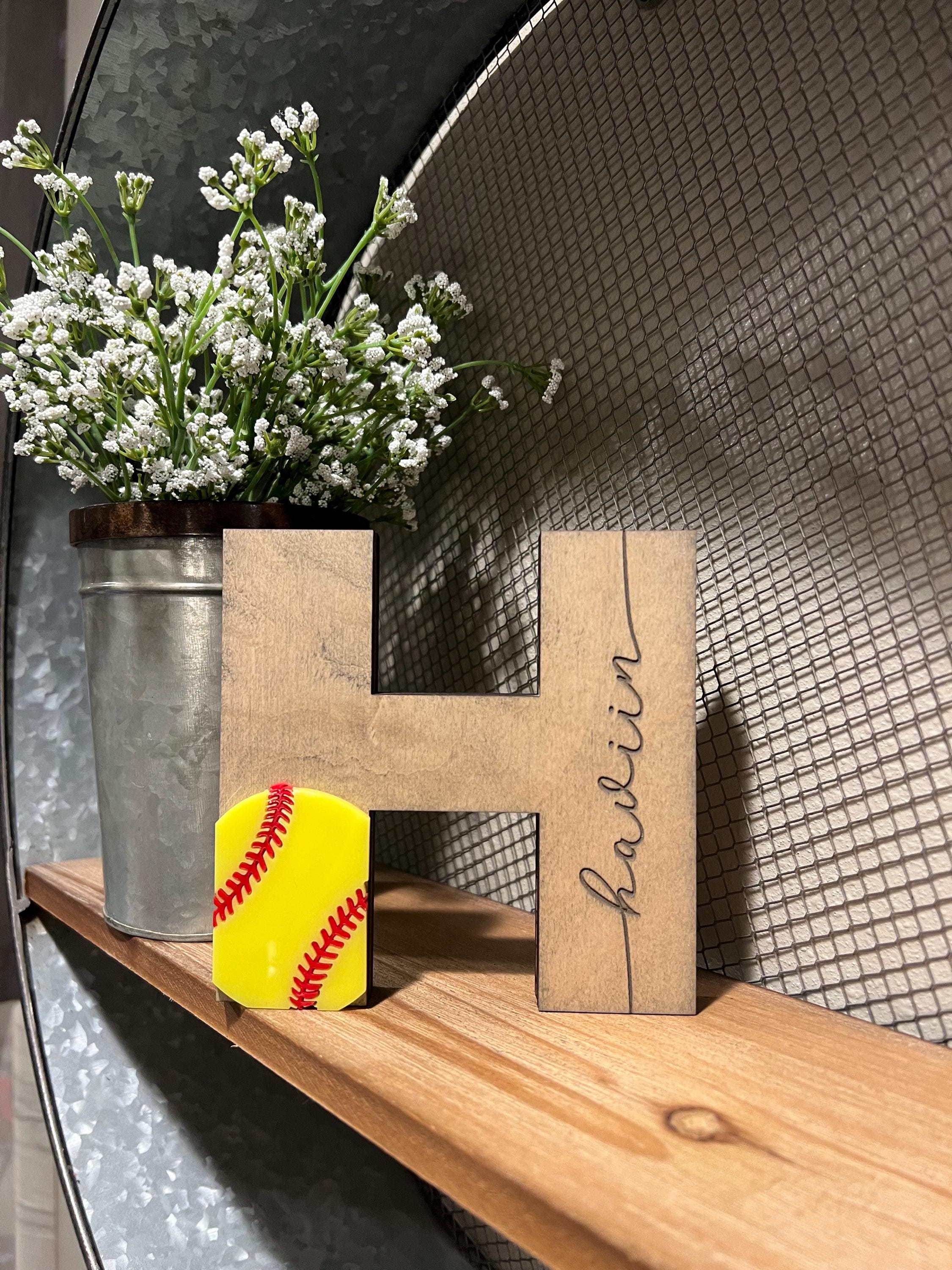 Want a fun way to display the sport your child is currently involved in? This letter is a beautiful home decor piece that adds a touch of your child’s interests. This is a great gift for Christmas or a senior’s graduation. This crafted decor piece is self standing.