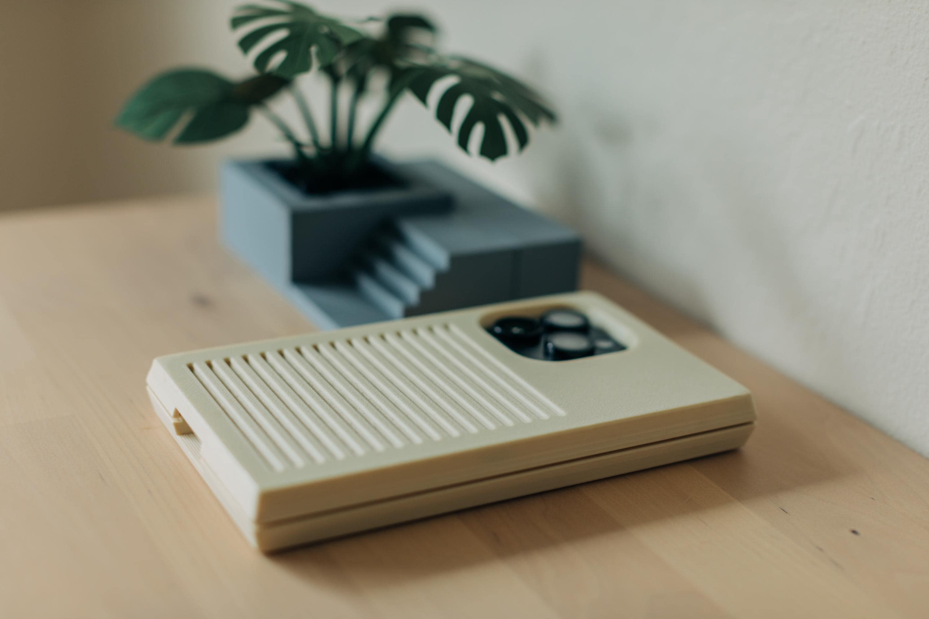 Inspired by 80’s computer styles, this retro iPhone case changes the game entirely. The oval screen cover harkens back to old school CRT monitors, while the volume buttons have been moved to the front of the case.